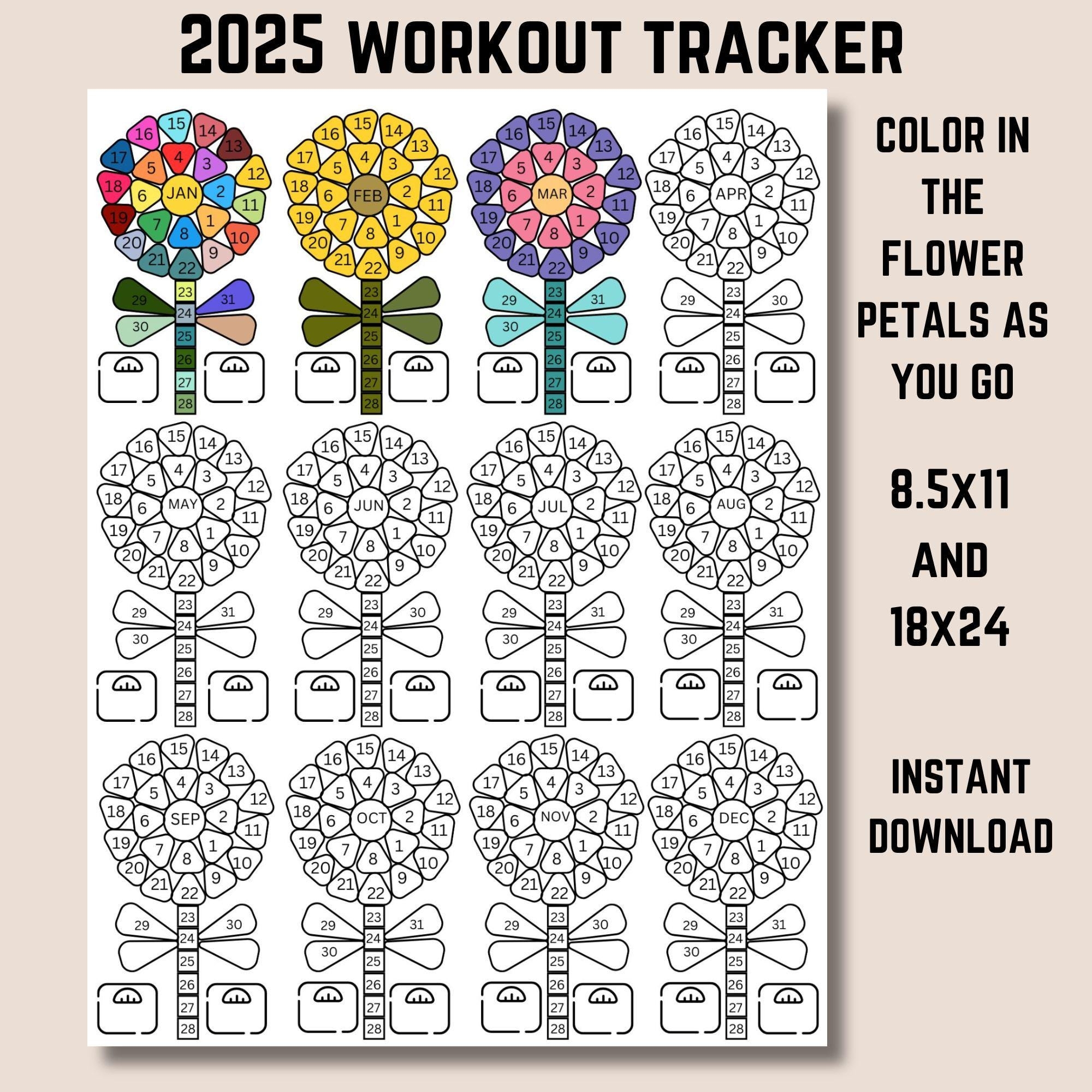 2025 Printable Fitness Workout Tracker Exercise Tracker Coloring Workout Calendar Workout Planner Instant Download Etsy