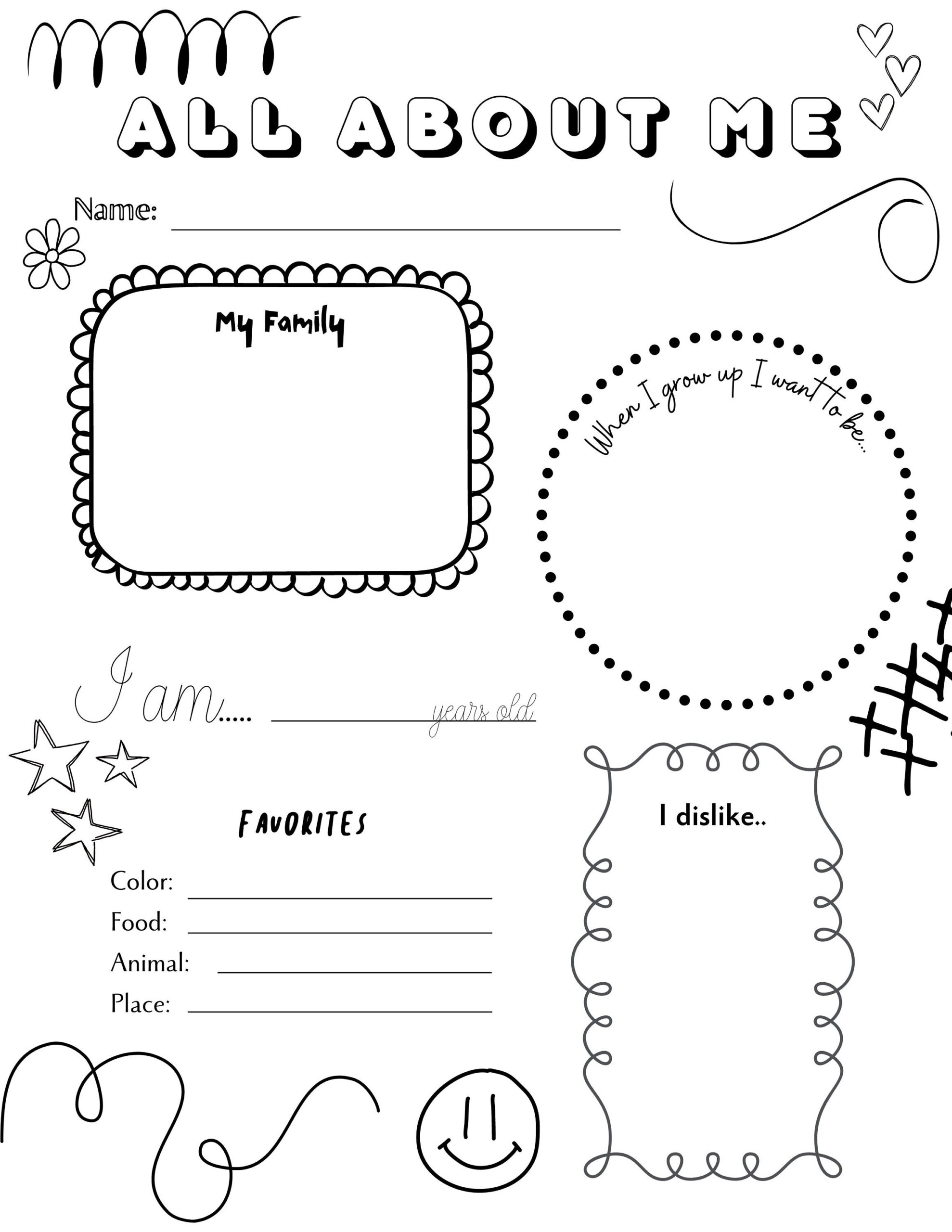 ALL ABOUT ME Poster Size Sheet Printable Writing Prompt For Kids Educational Children Page Printable Sheet For Back To School Etsy