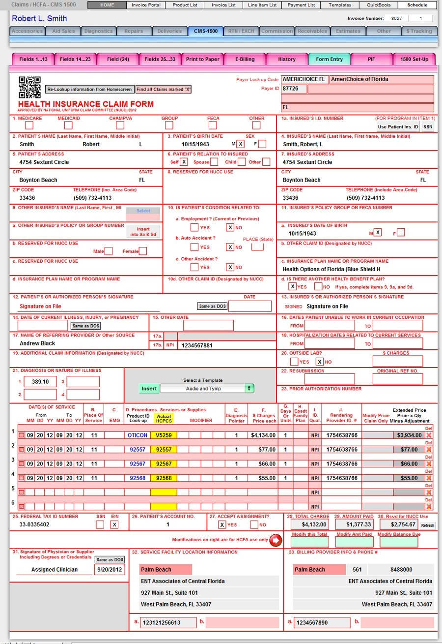 CMS 1500 PQRS Ready Financial And Billing HearForm Features HearForm