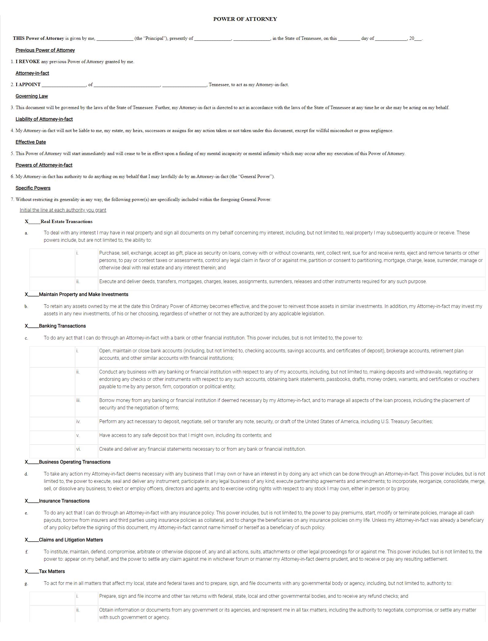 Tennessee Power Of Attorney Form Download POA Legal Form