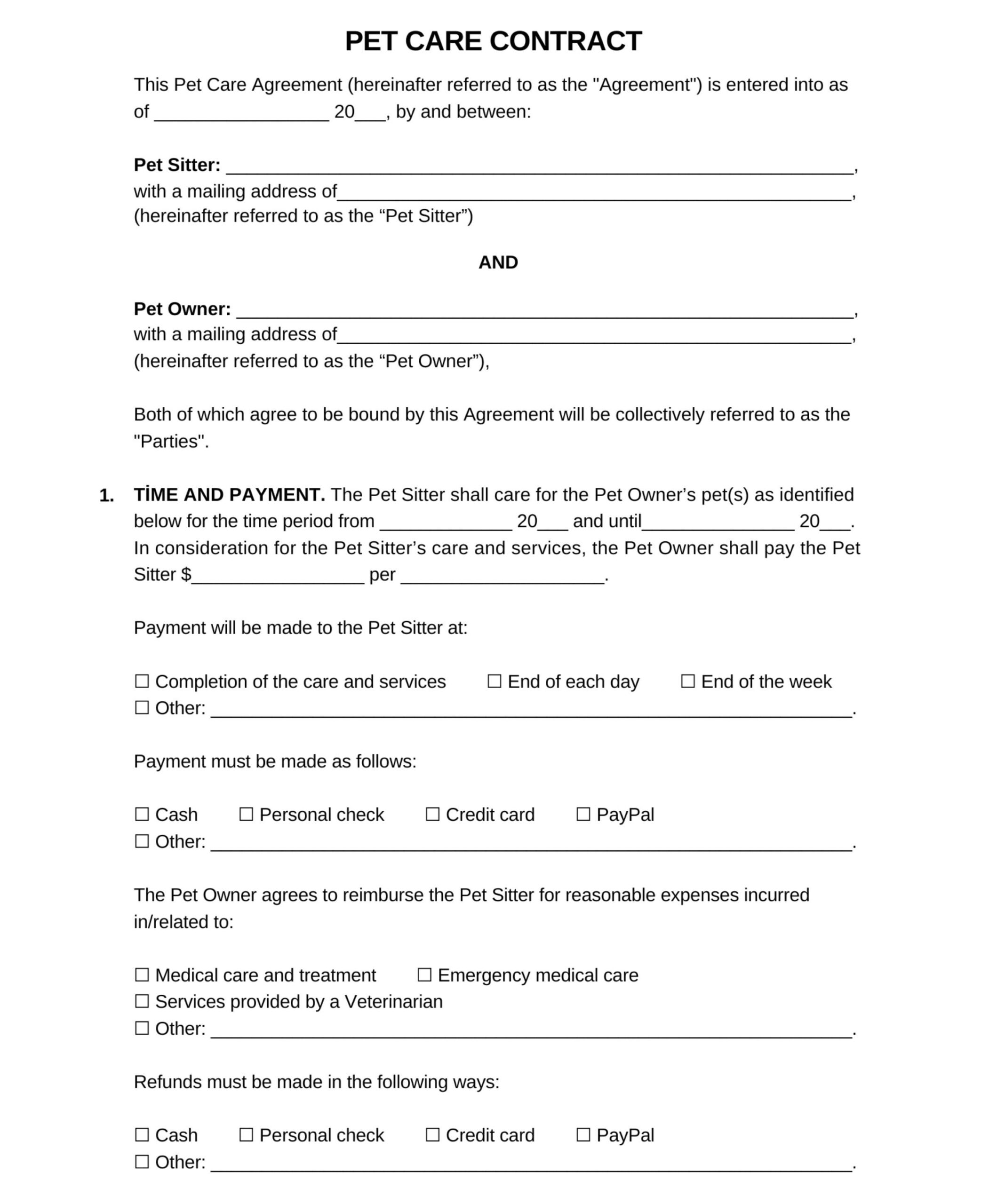 Free Pet Sitting Contract Make U0026 Download Rocket Lawyer