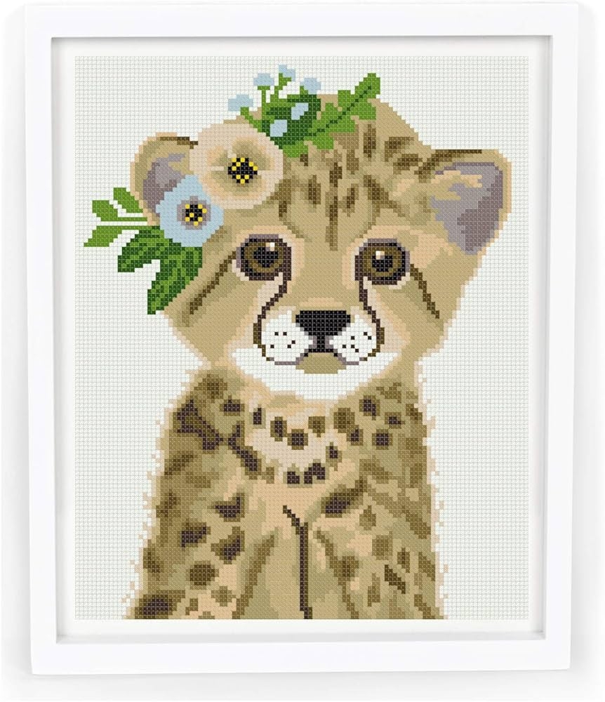 Cross Stitch Pattern Baby PDF Cute Safari Animal Cheetah Geopardo Printable Easy Cross Stitch Design Flowers Modern Counted DMC Cross Stitch Chart