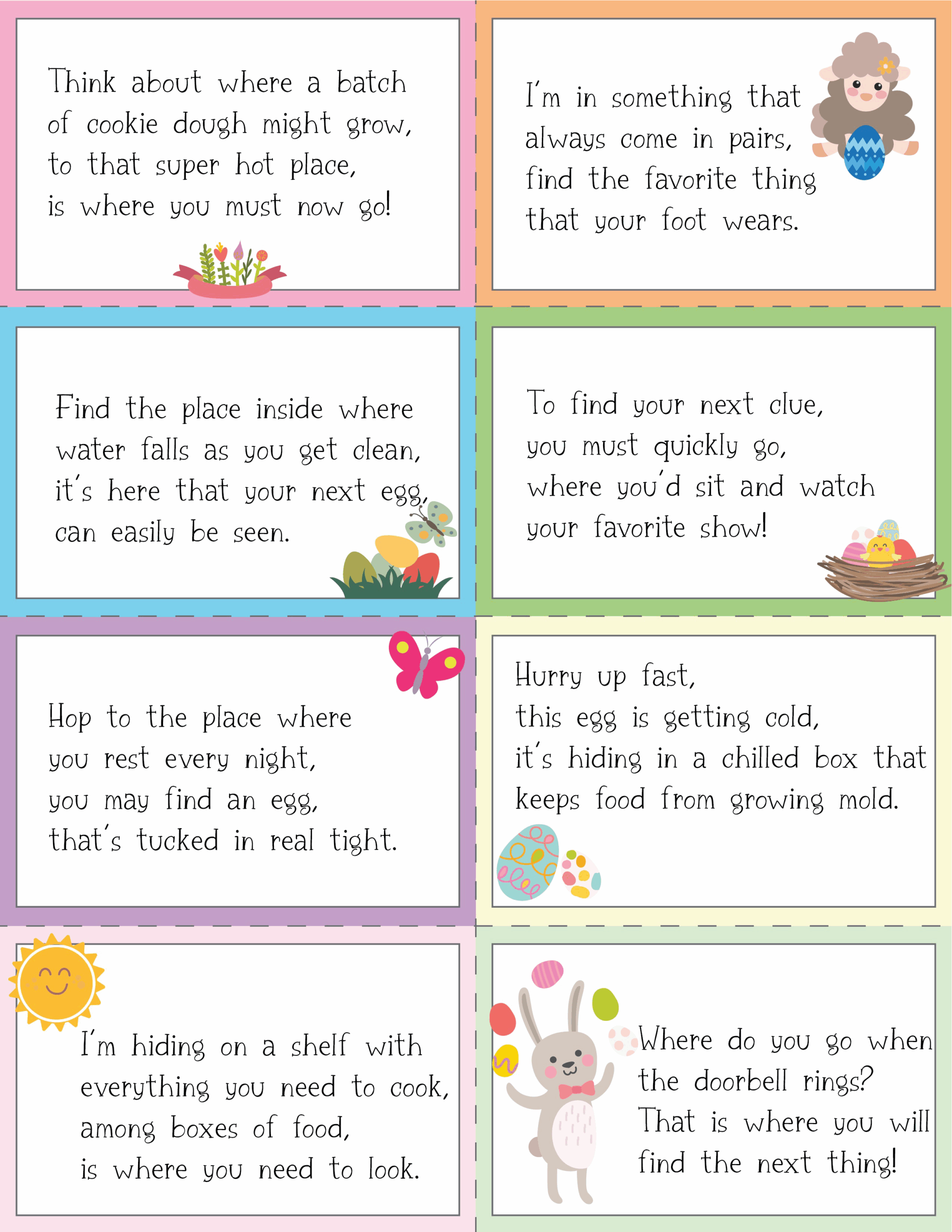 48 Free Printable Easter Egg Hunt Clues For Kids Play Party Plan Worksheets Library