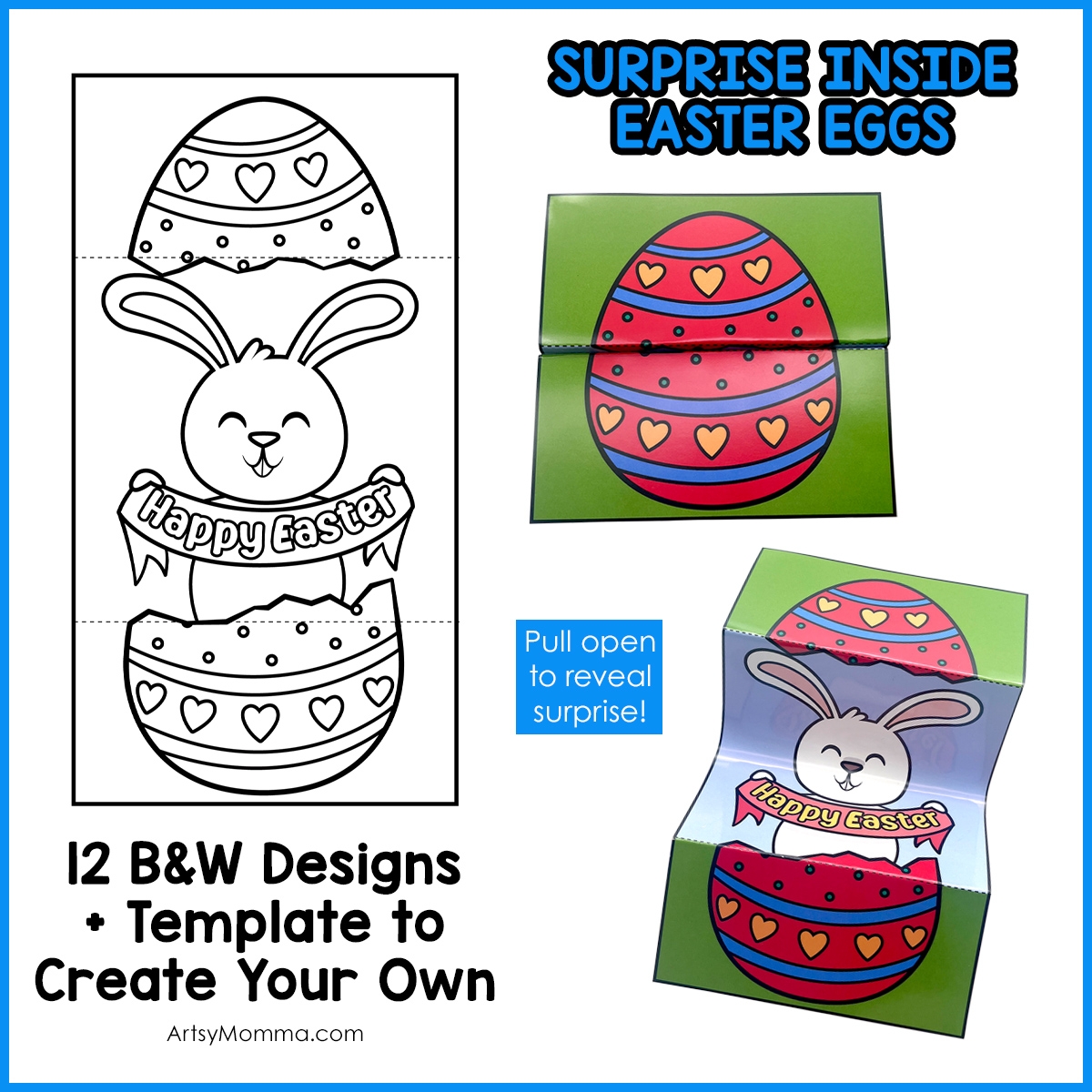12 Printable Interactive Surprise Inside Easter Egg Coloring Crafts