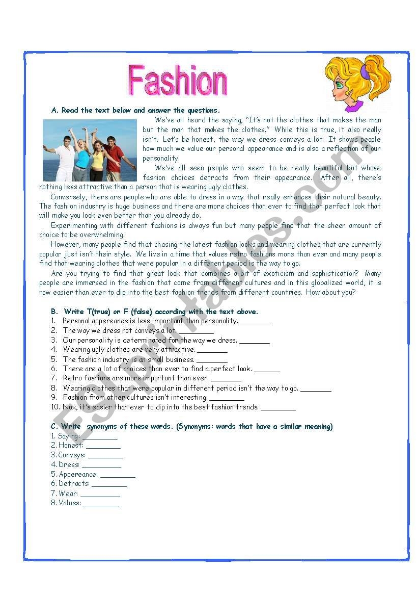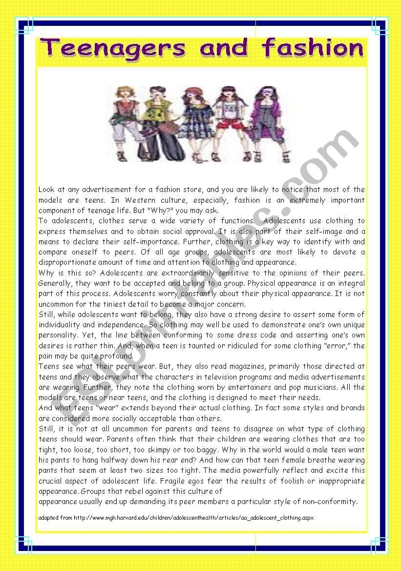 Reading Why Is Fashion So Important For Teens ESL Worksheet By Nasnous