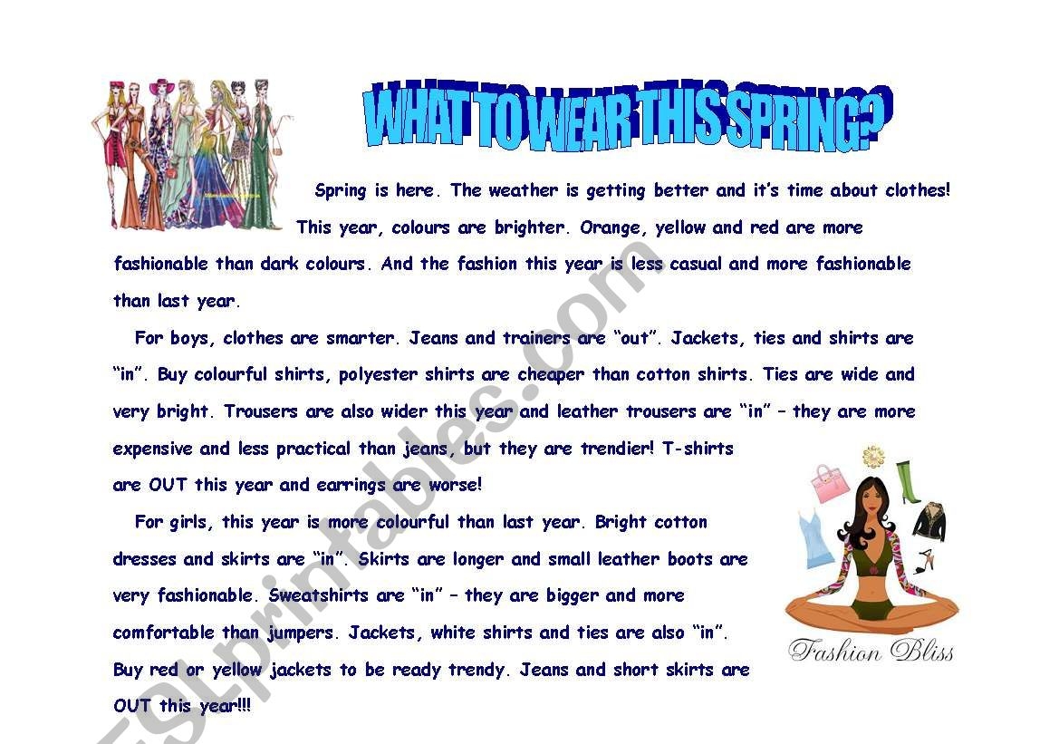 Reading And Writing About Fashion ESL Worksheet By Brcyns