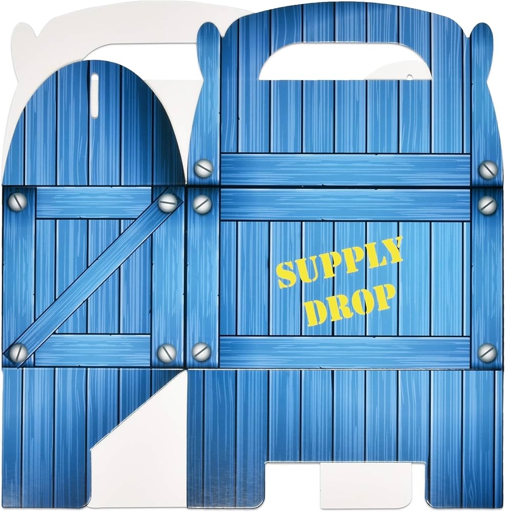 Supply Drop Favor Box 48 Count Battle Gamer Treat Boxes Blue Crate Mystery Cardboard Holder For Video Game Controller Girl Boy Kids Birthday Party Supplies Decor Gaming Candy Cookie Gable Container