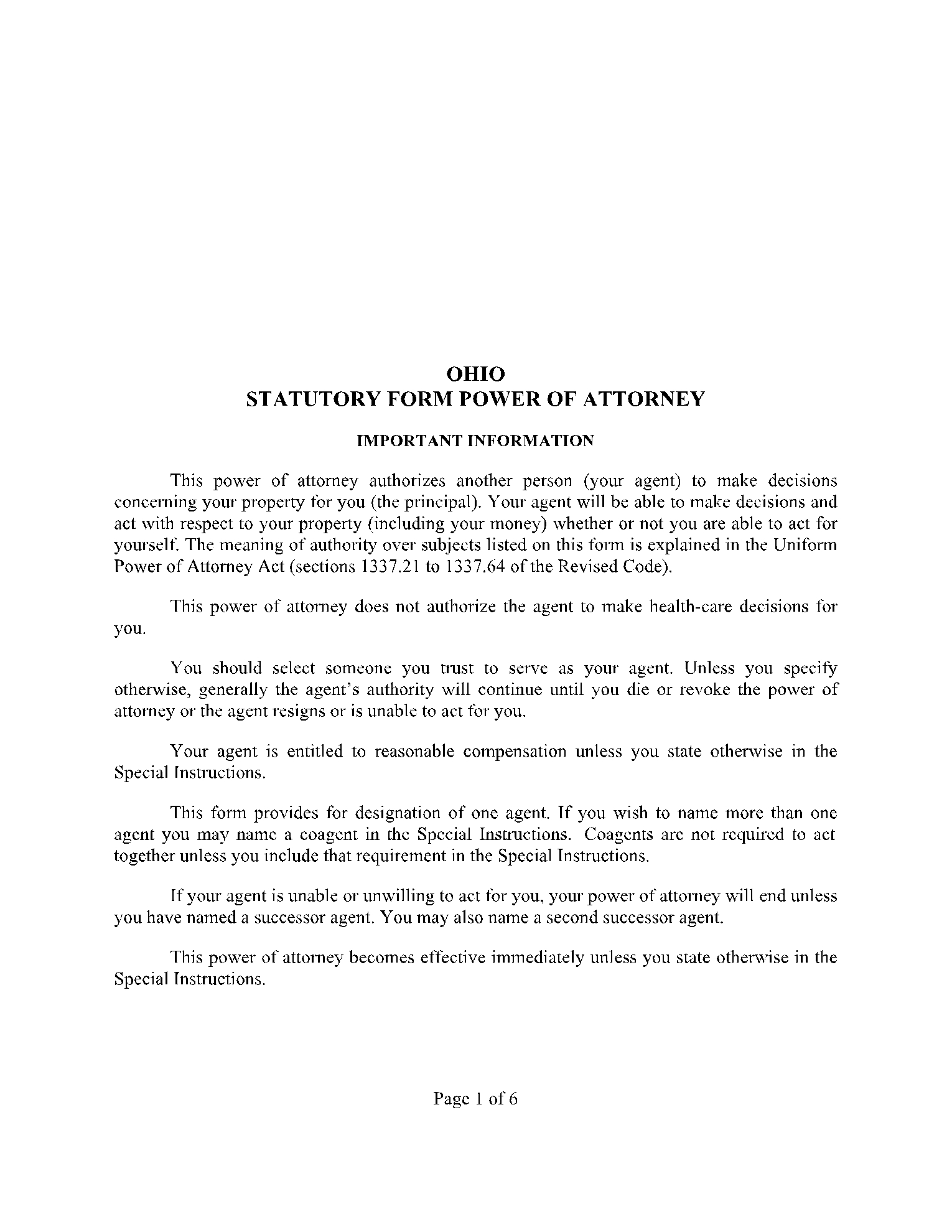Free Ohio OH Power Of Attorney Forms U0026 Templates PDF