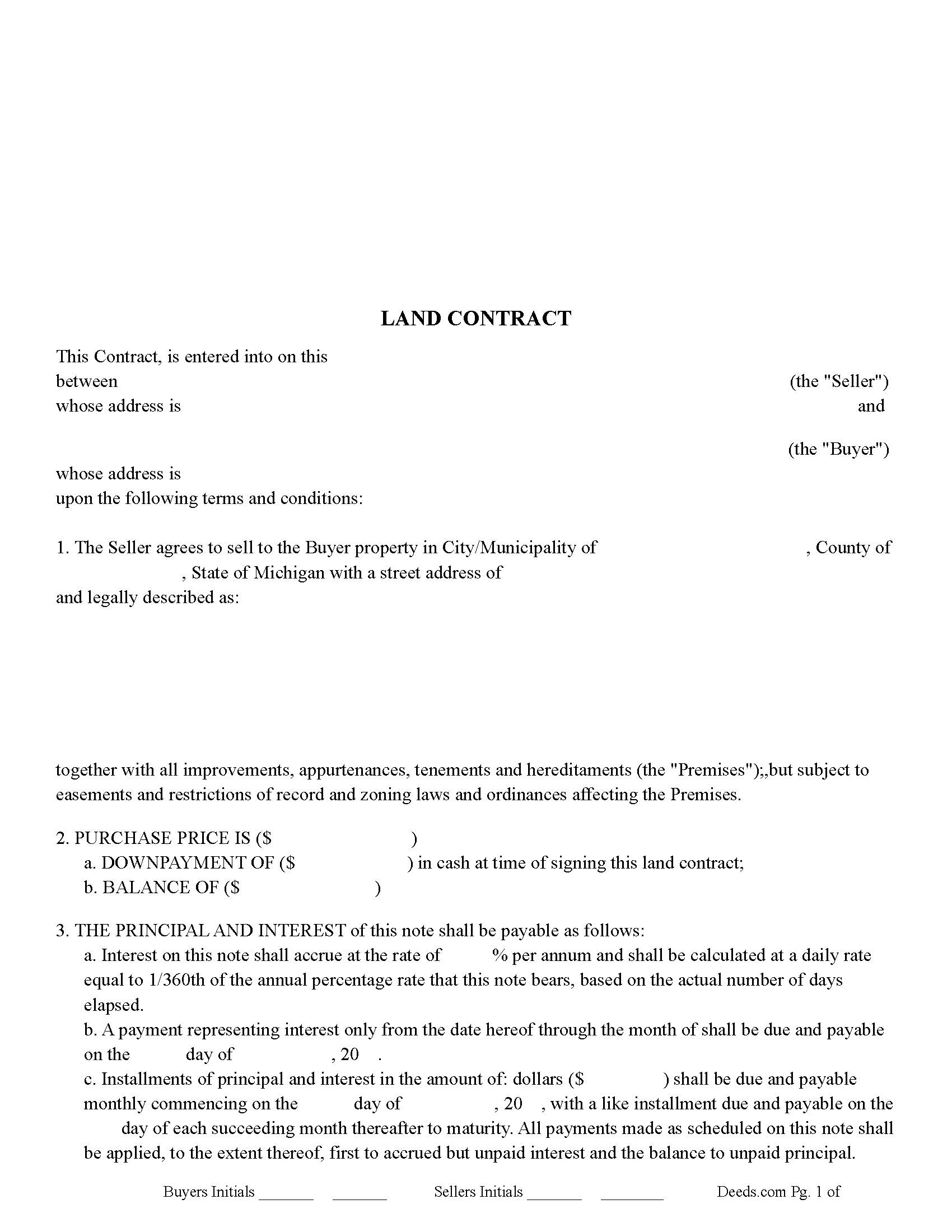 Free Fillable Michigan Land Contract Form Printable