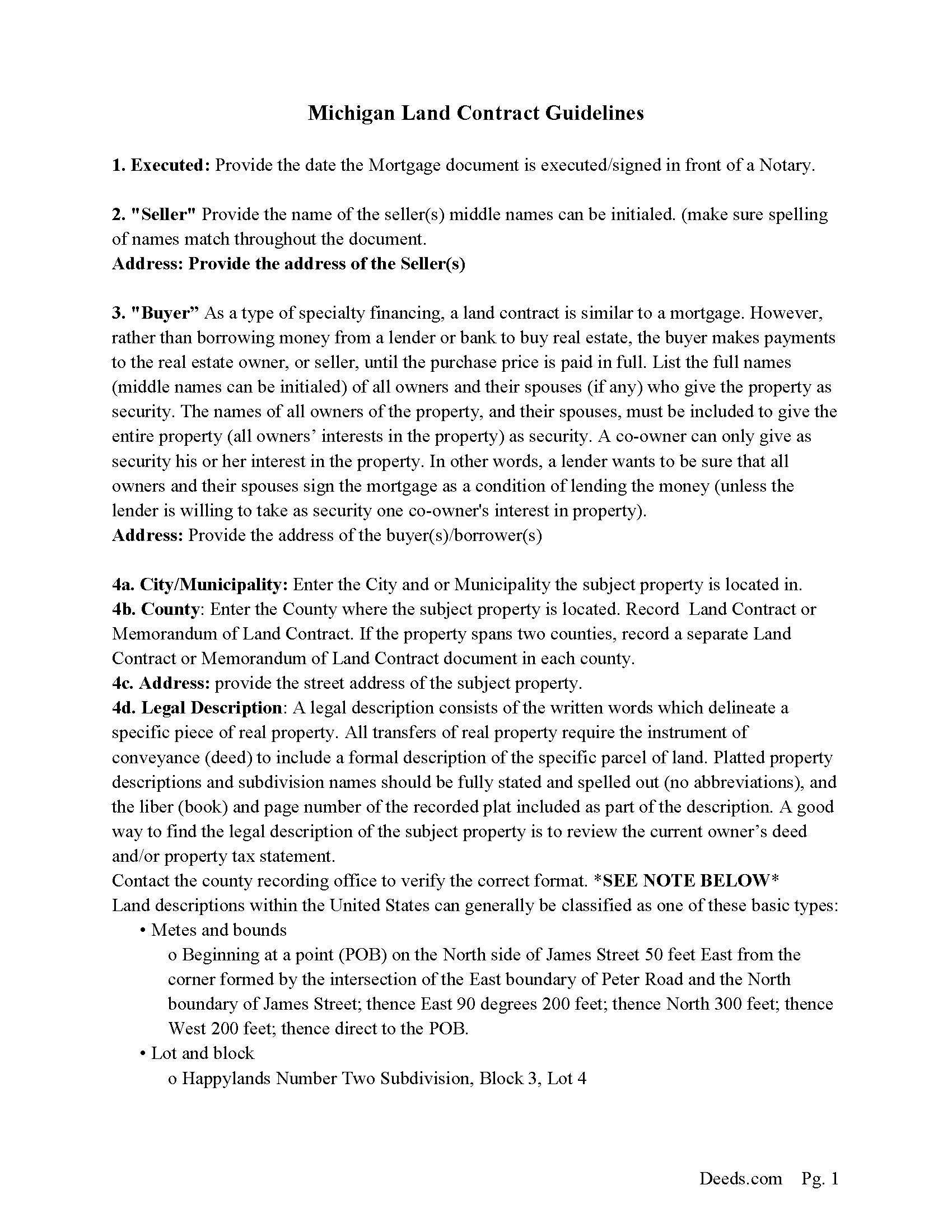 Free Michigan Land Contract Template PDF Word EForms