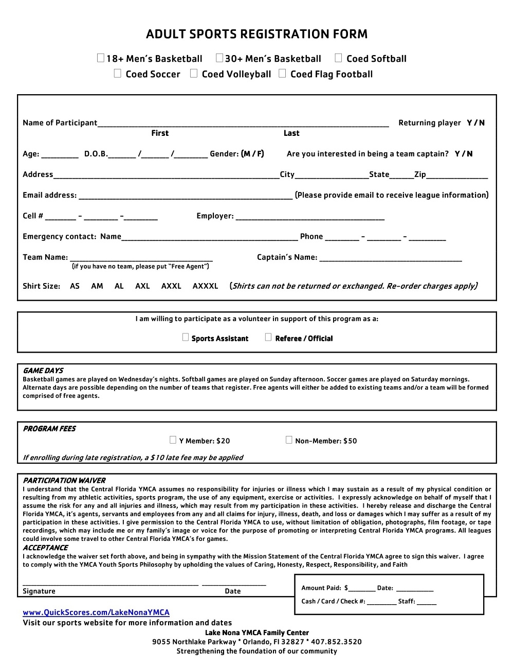 Printable Registration Forms