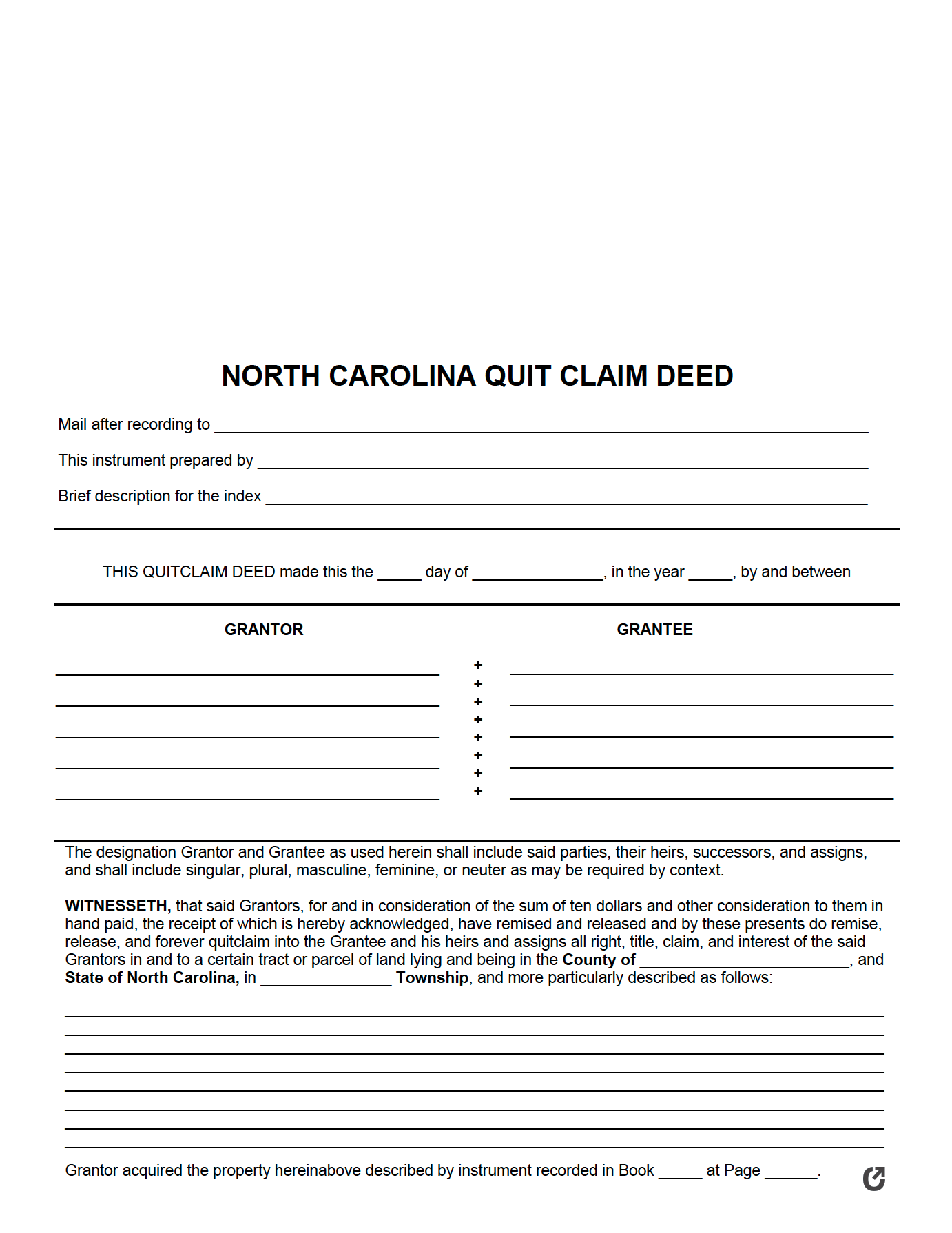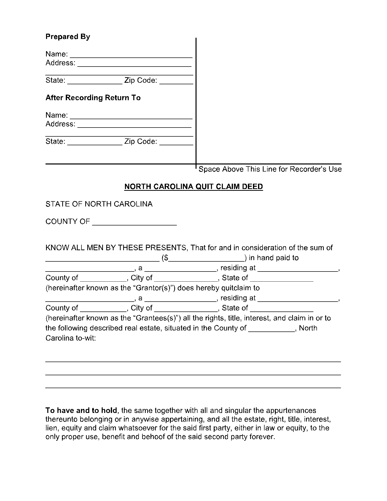 Free North Carolina Quit Claim Deed Form PDF WORD