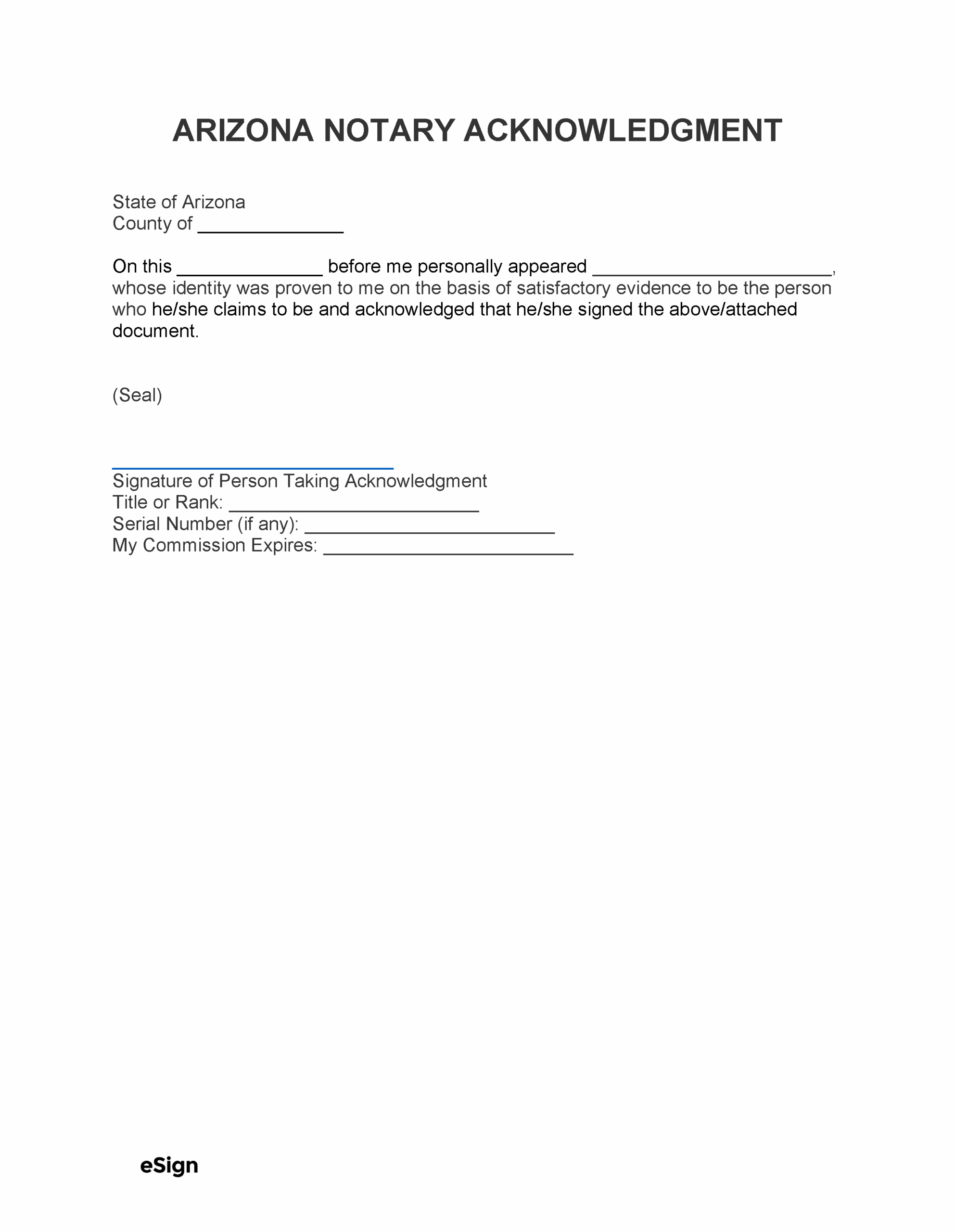 Free Arizona Notary Acknowledgment Form Online Notary PDF Word