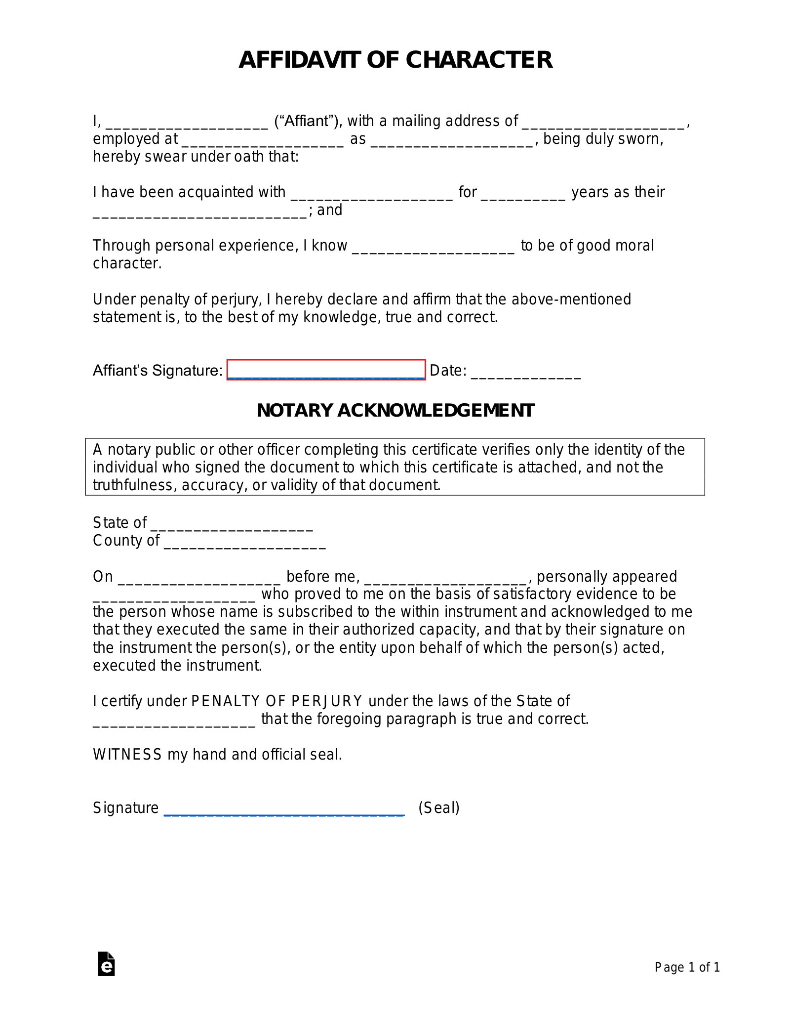 Free Affidavit Of Character Make U0026 Download Rocket Lawyer
