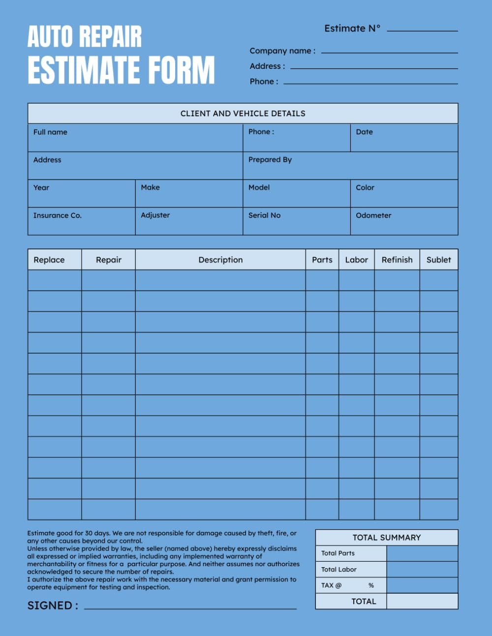 Say goodbye to the stress of keeping track of car repair details and hello to a more organized and efficient process. Try our free printable auto repair forms today and see the difference for yourself. Download, print, and enjoy a hassle-free car repair experience!
