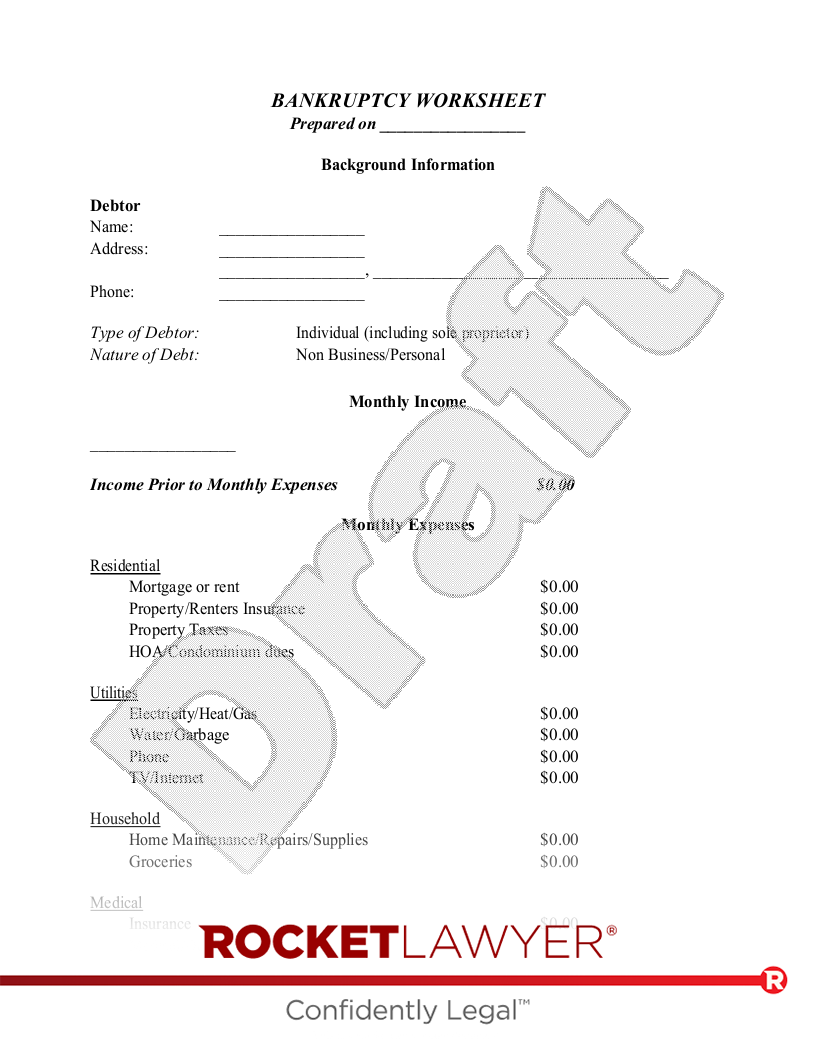 Free Bankruptcy Worksheet Rocket Lawyer