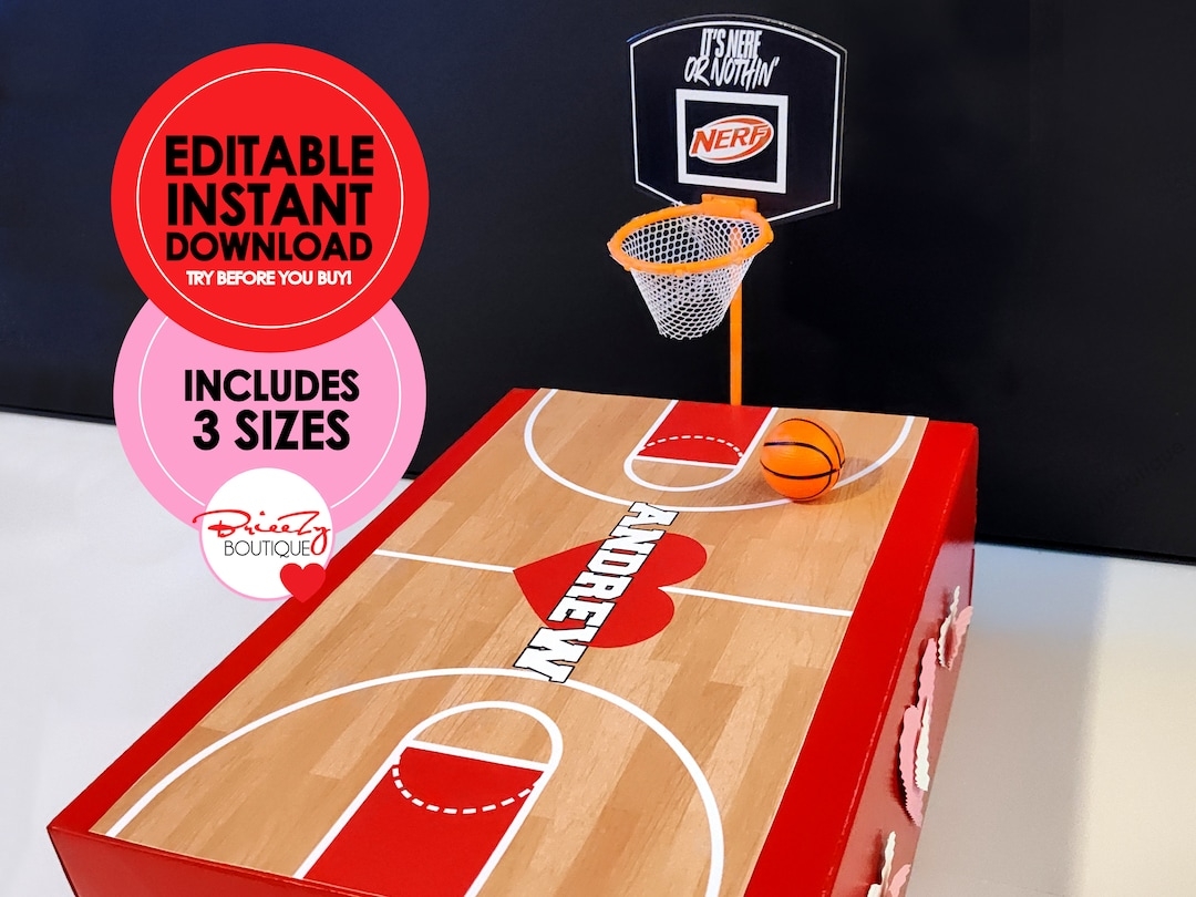 Printable Valentines Basketball Court For Box EDITABLE INSTANT DOWNLOAD Basketball Valentine Valentines Box Basketball Court Etsy