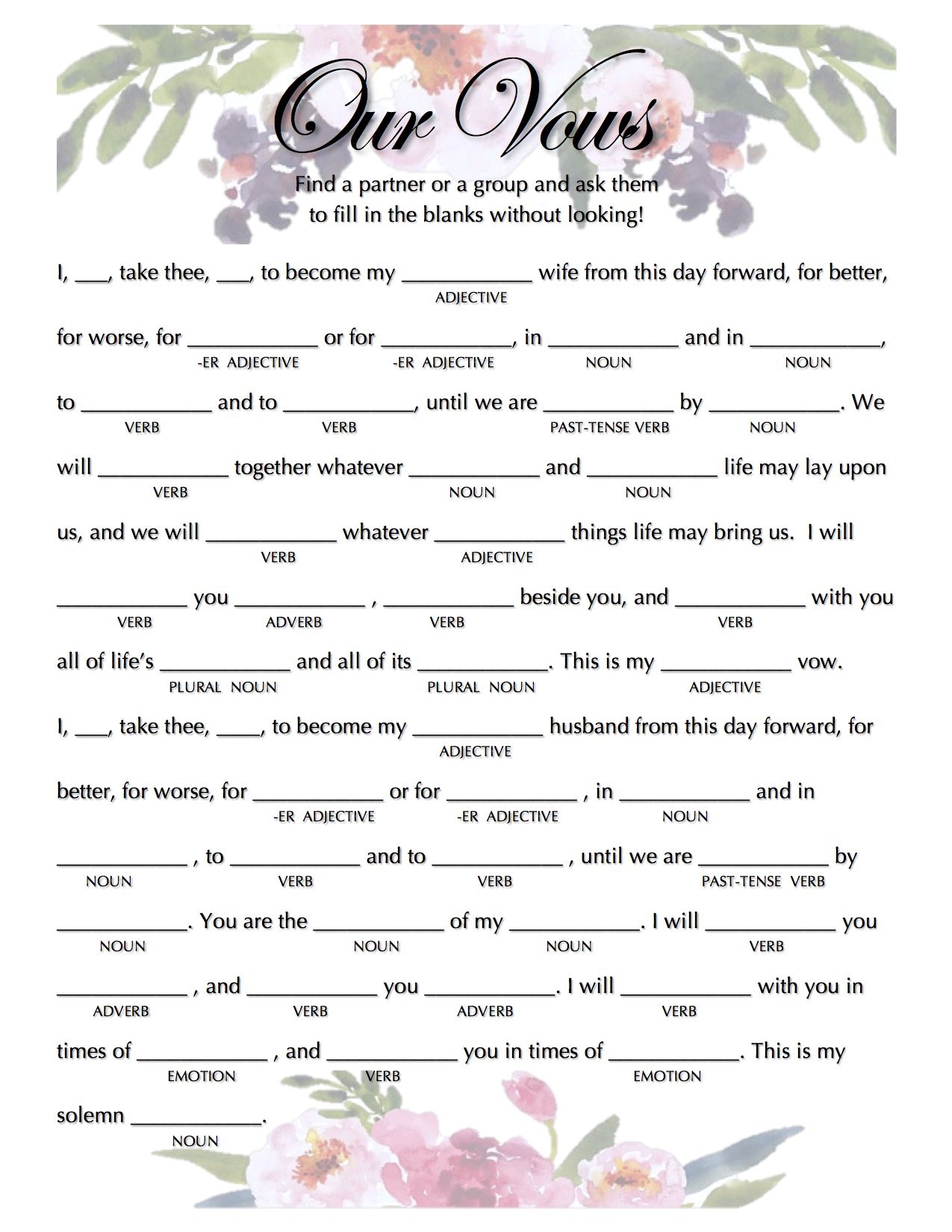 Simply download and print out the templates, fill in the blanks with words of your choice (adjectives, nouns, verbs, etc.), and then read the resulting story aloud for some guaranteed laughs. It’s a simple yet entertaining activity that will make your bridal shower a memorable event for everyone.