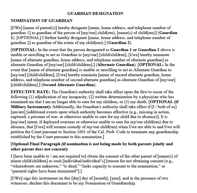 Guardian Designation For Minor Child Templates U0026 Samples