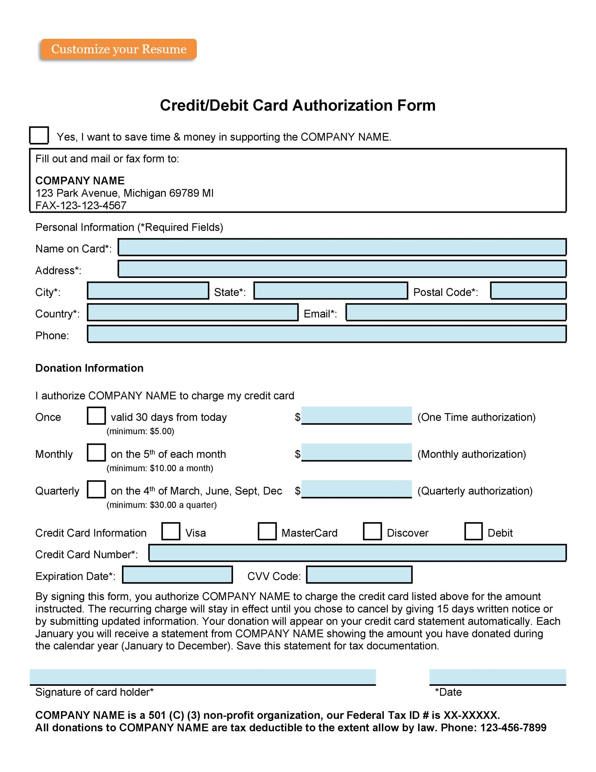 Free Credit Card Authorization Forms 4 PDF Word EForms
