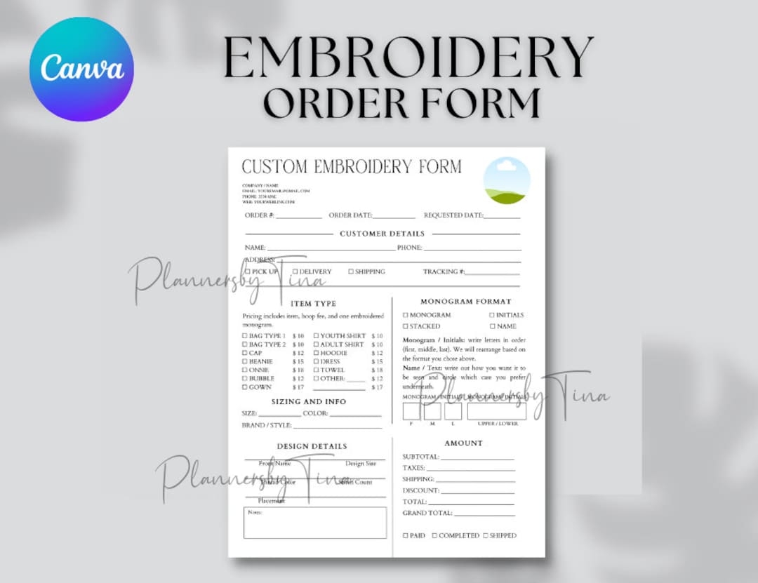 Editable Embroidery Order Form Template Custom Embroidery Form Order Ready Printable Editable Embroidery Work Order Instant Download Etsy