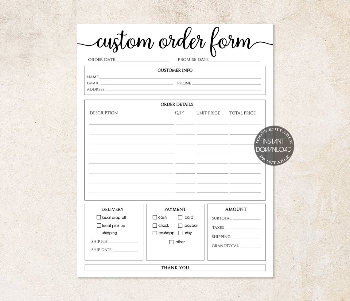 Not only does our custom order form help you stay organized, but it also provides a professional touch to your business. Your customers will appreciate the clarity and professionalism of a well-designed order form.