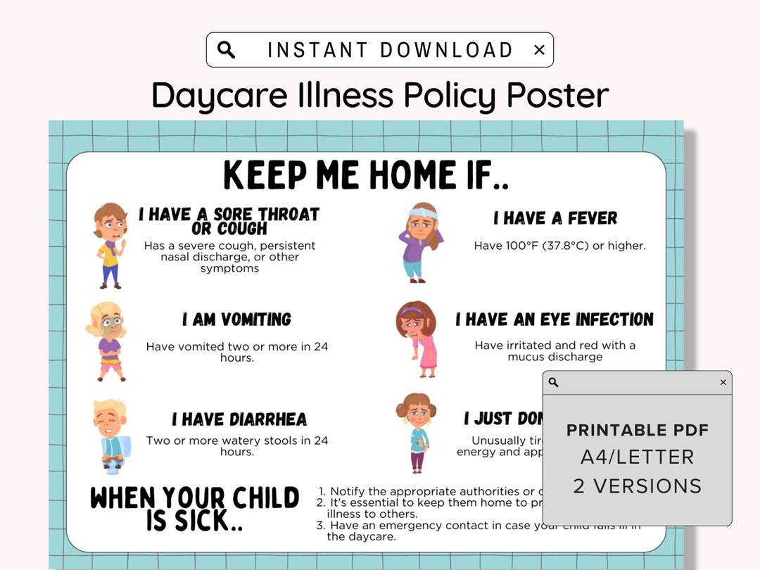 In Home Daycare Sickness Policy Poster Health And Safety Daycare Forms Childcare Sign Parent Board Communication Printable Illness Poster Etsy