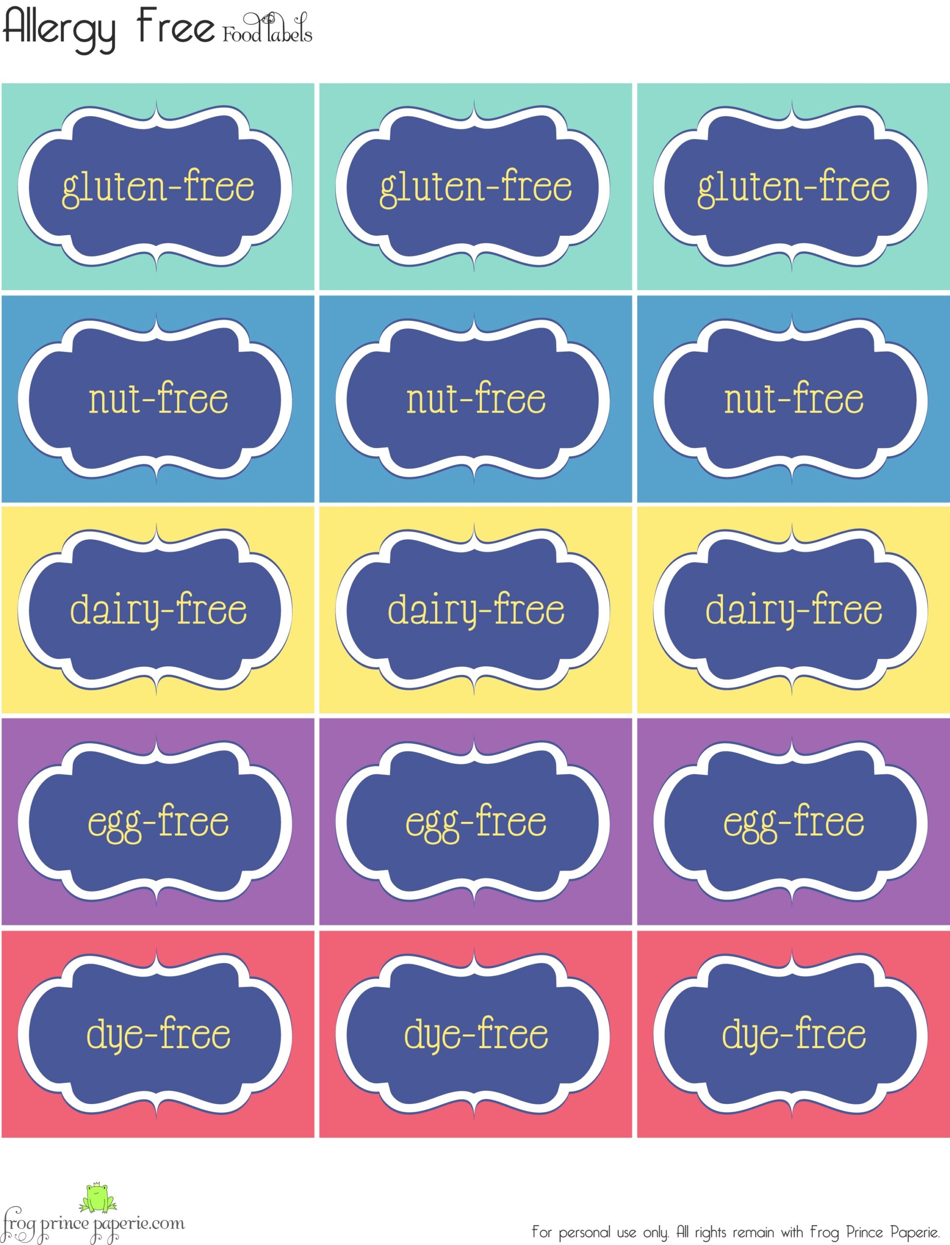 Free Printable Allergy Free Party Food Labels Frog Prince Paperie