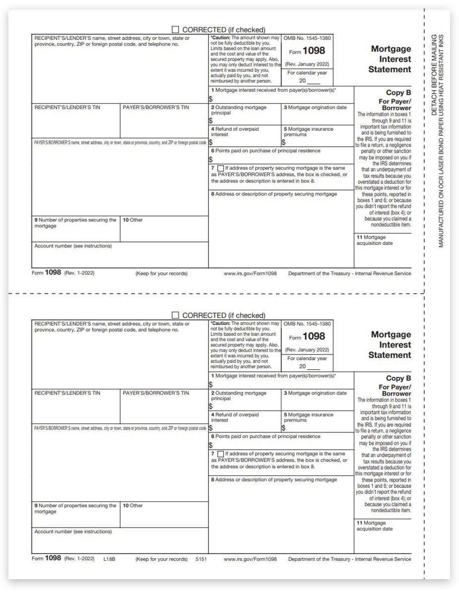 1098 Tax Forms For Mortgage Interest IRS Copy A DiscountTaxForms