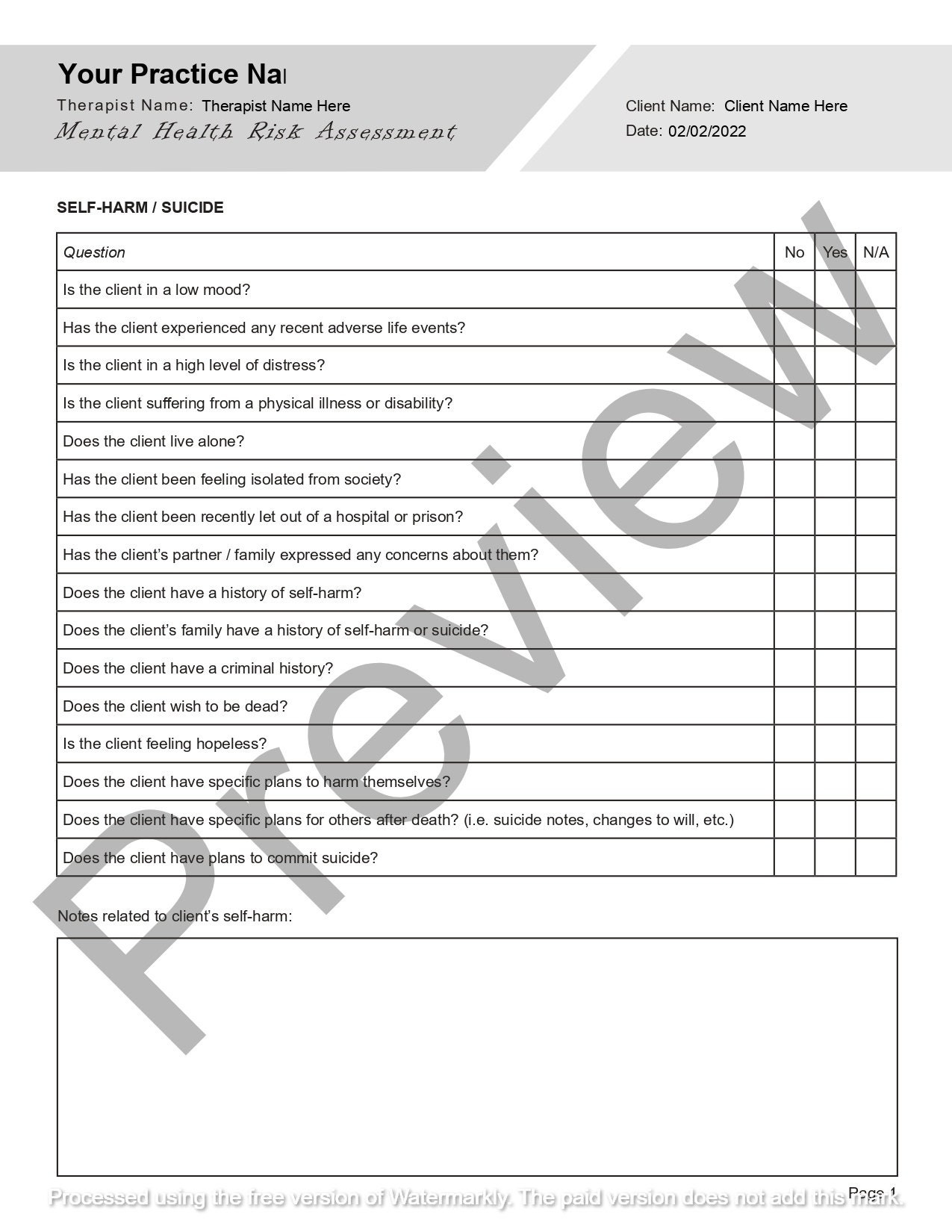 Mental Health Risk Assessment Editable Fillable PDF For Counselors Psychologists Psychiatrists Therapists Etsy UK