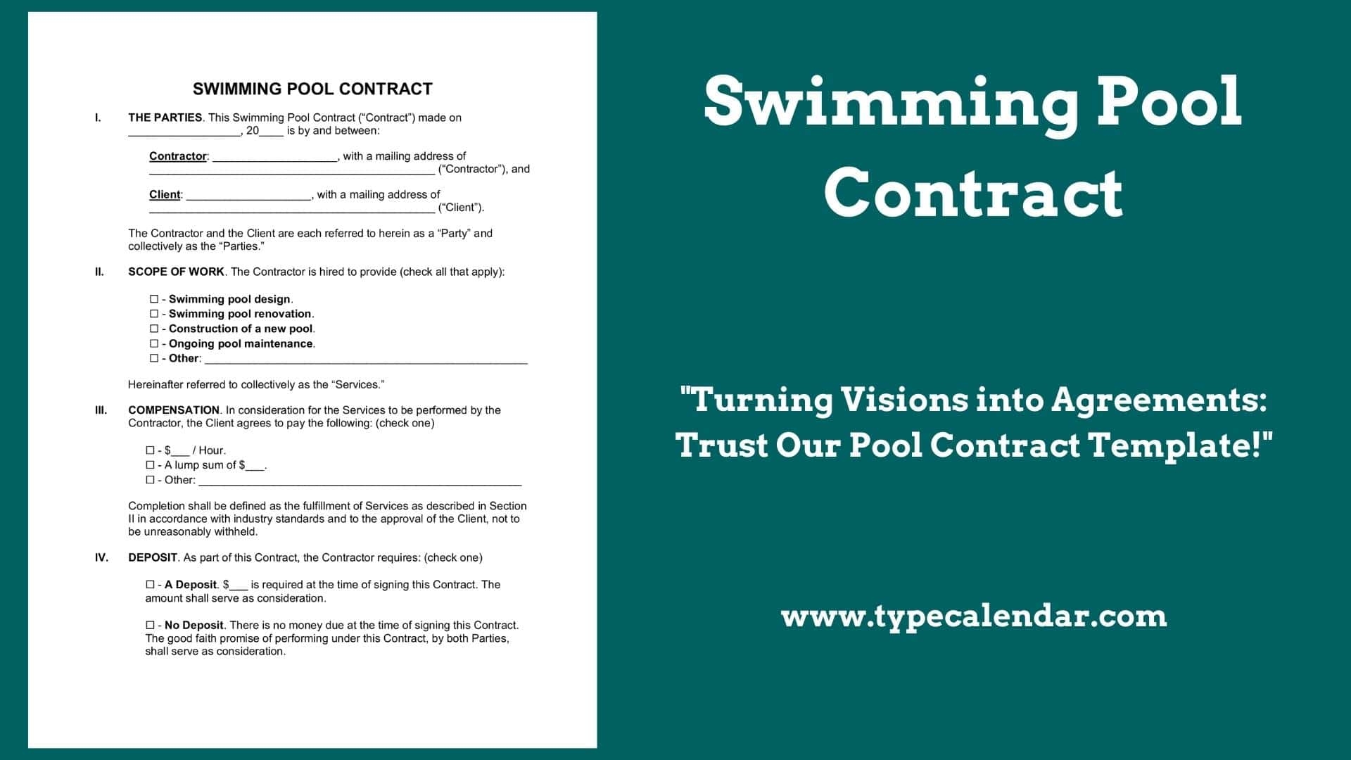 Free Printable Swimming Pool Contract Templates PDF Agreements