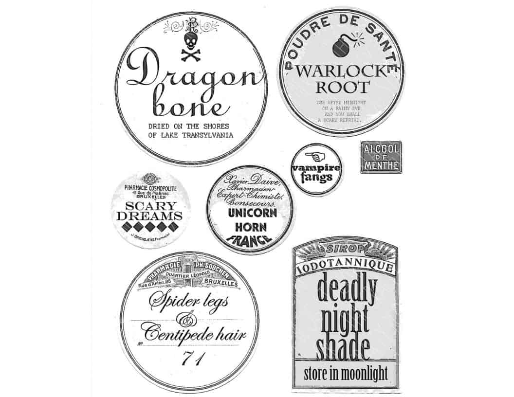 These free printable potion bottle labels come in a variety of designs, from creepy to cute. Simply print them out on sticker paper, cut them to size, and affix them to your bottles for an instant Halloween transformation.