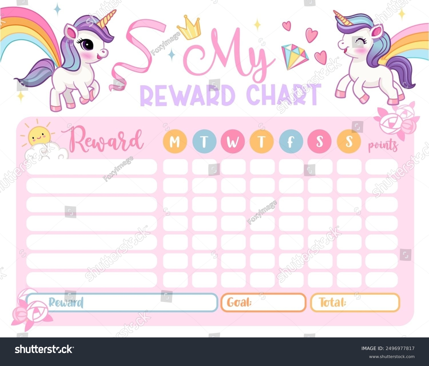 Pastel Reward Chart Printable Chore Girl Stock Vector Royalty