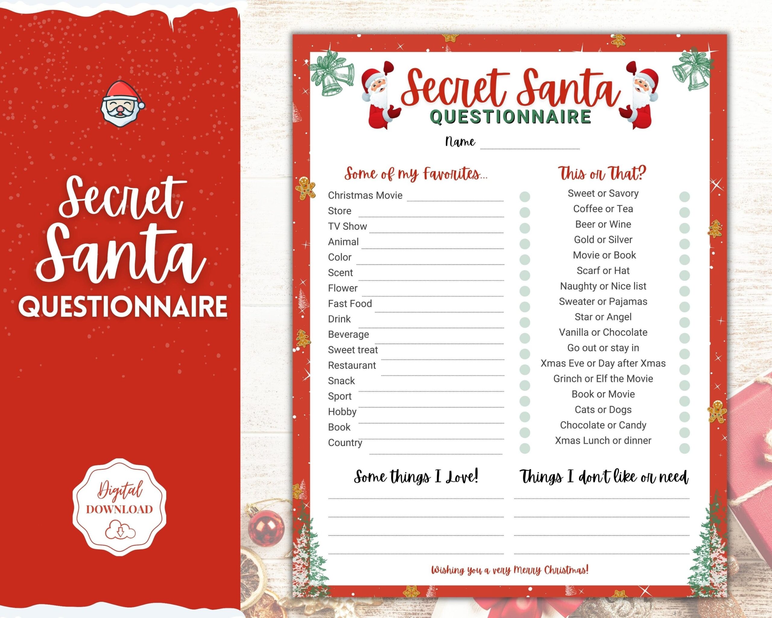 Secret Santa Questionnaire Printable Holiday Gift Exchange Form Work Or Personal Christmas Wish List Kids Adults Gift List Xmas Party Etsy