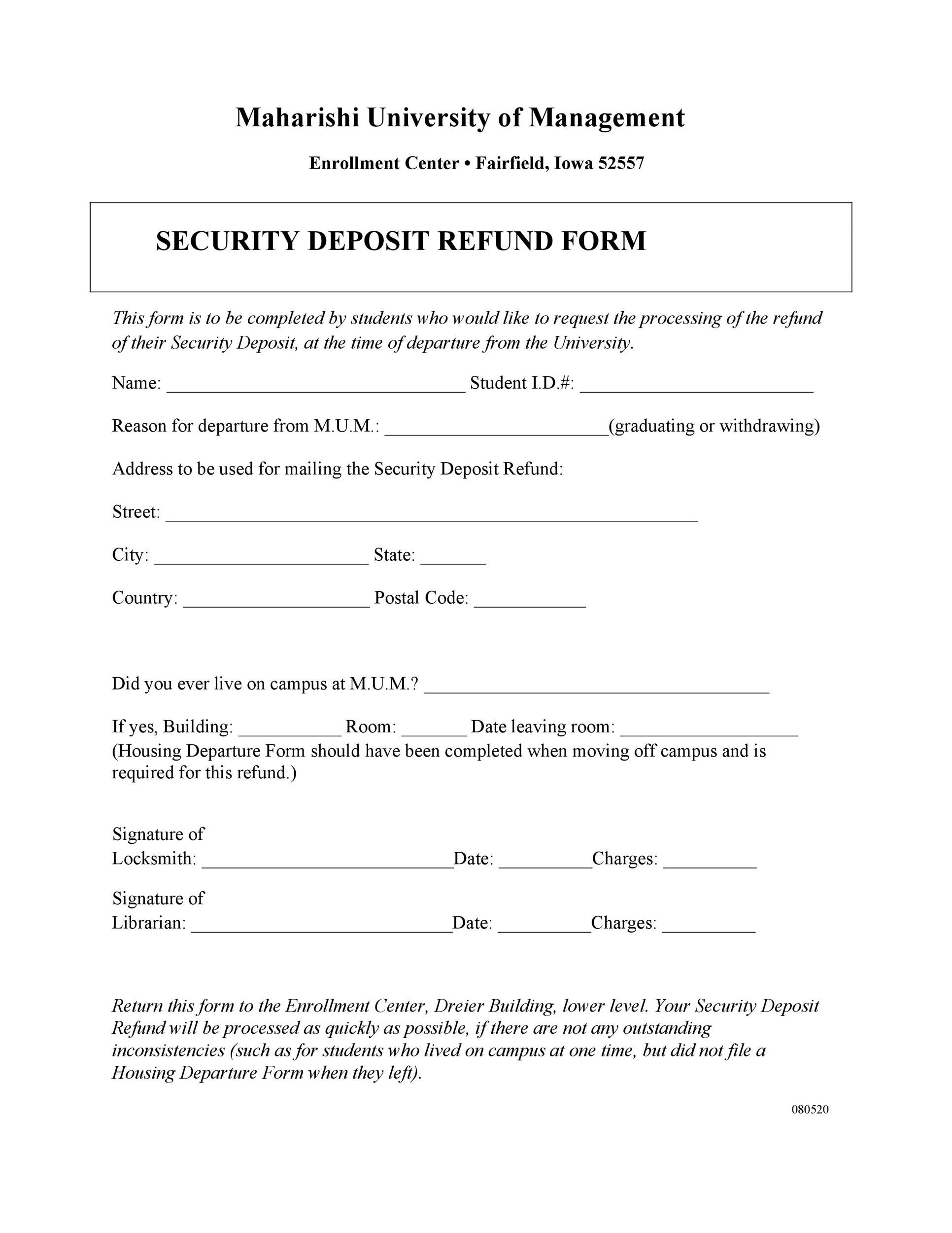 Free Security Deposit Return Refund Letter PDF Word