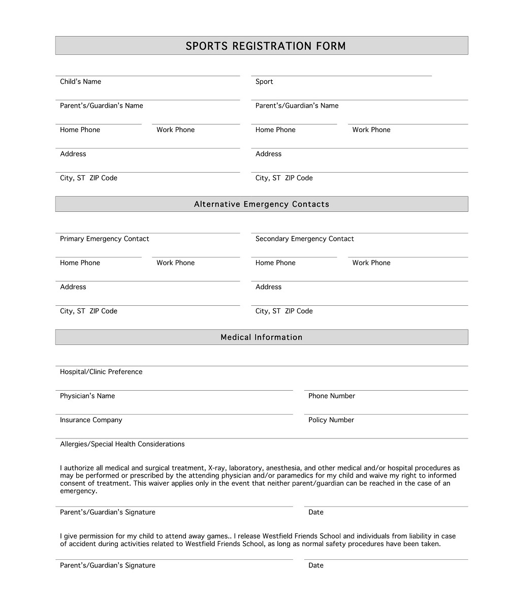 Free Printable Sports Registration Forms