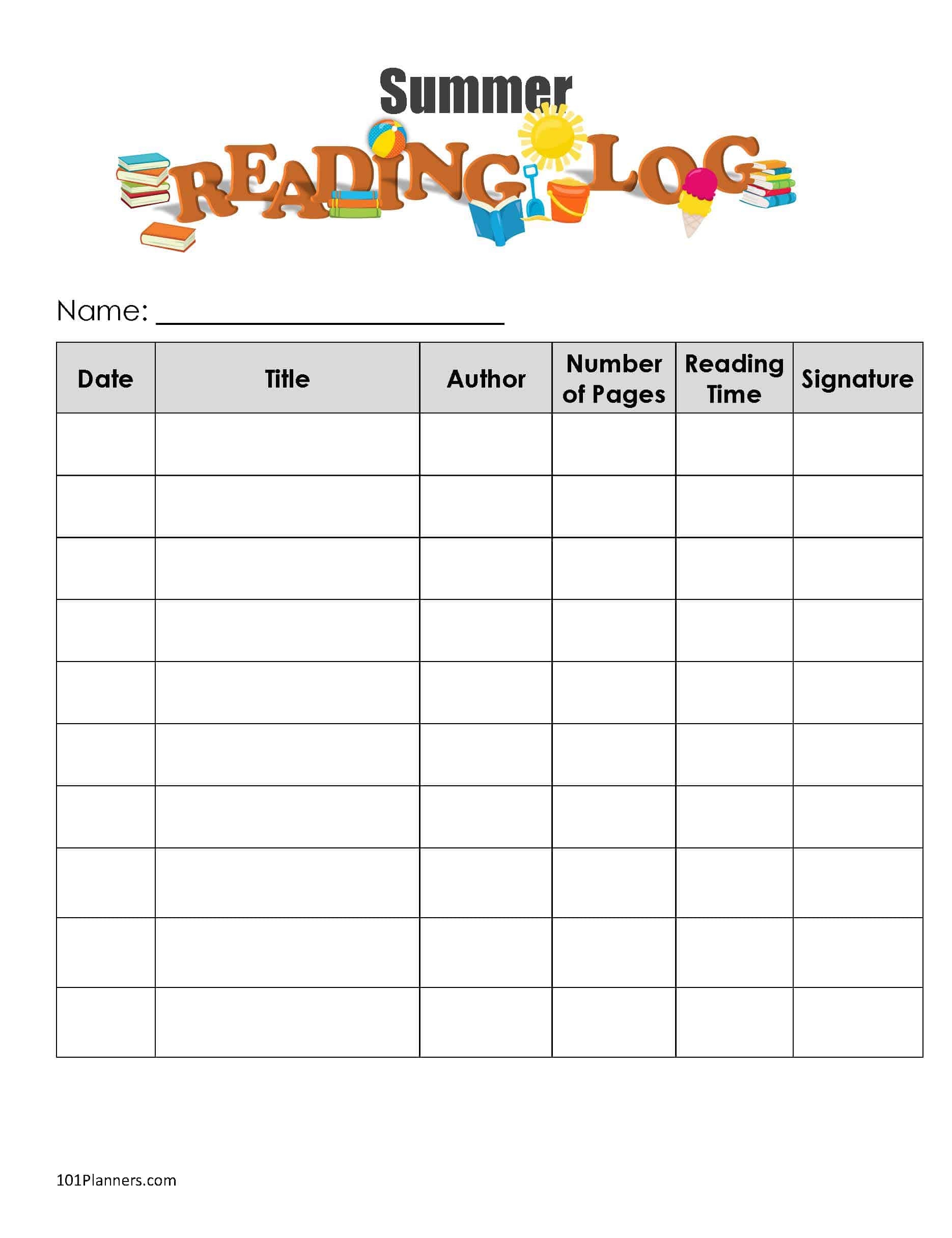 Free Printable Summer Reading Log