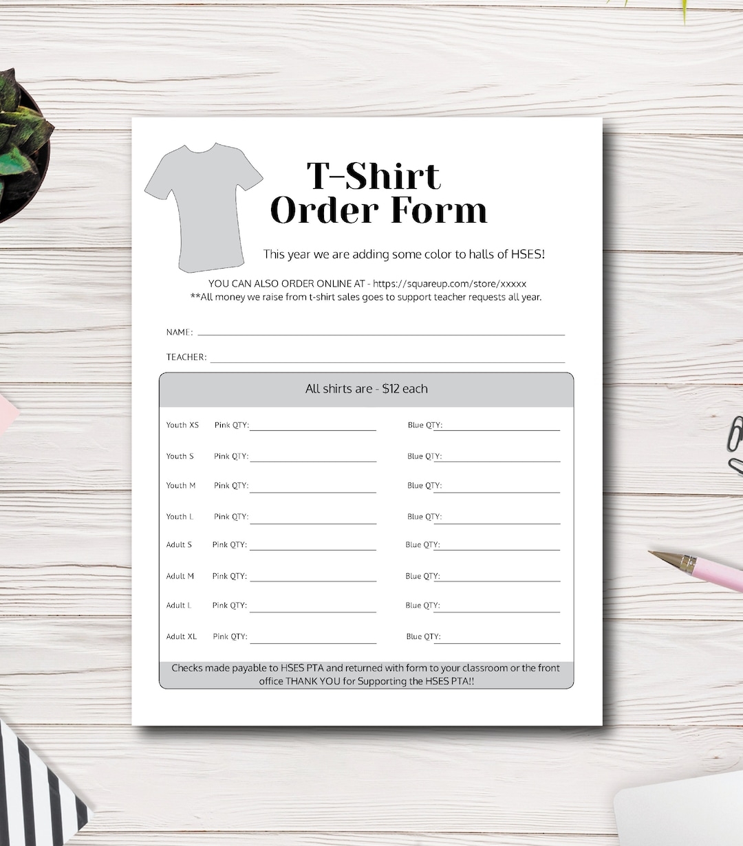 T shirt Order Form Template PTA PTSA PTO Church Fundraiser Flyer Template Printable File Edit Yourself Easy To Use Template Etsy