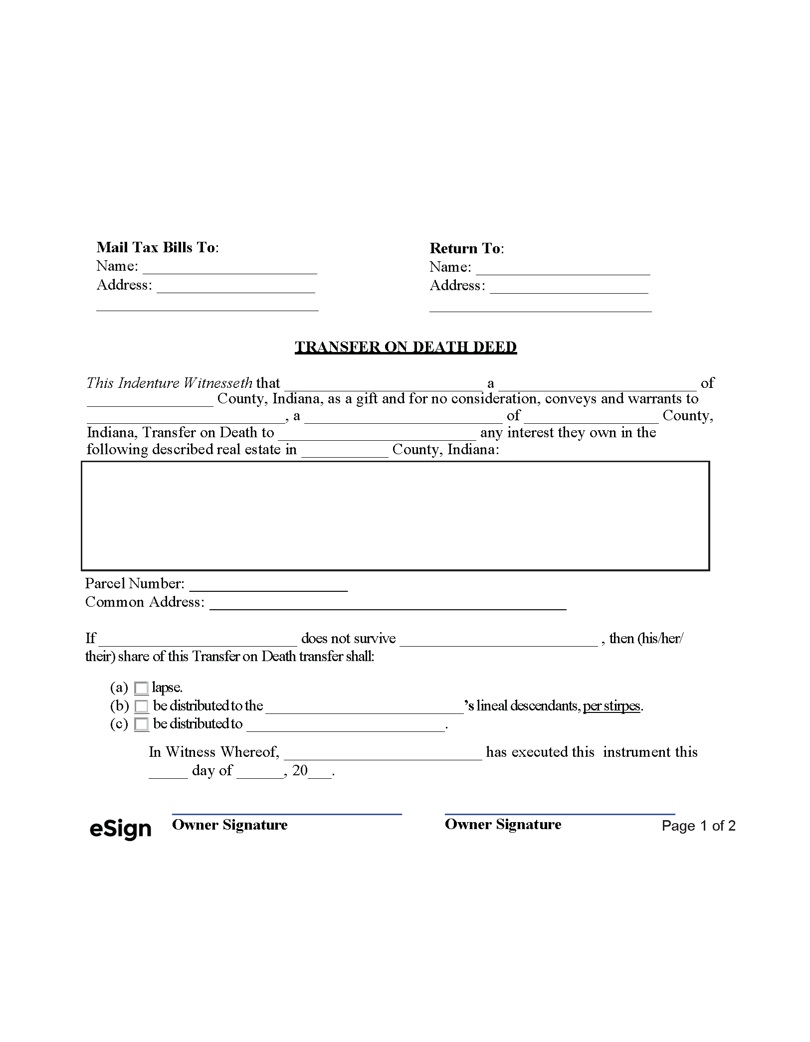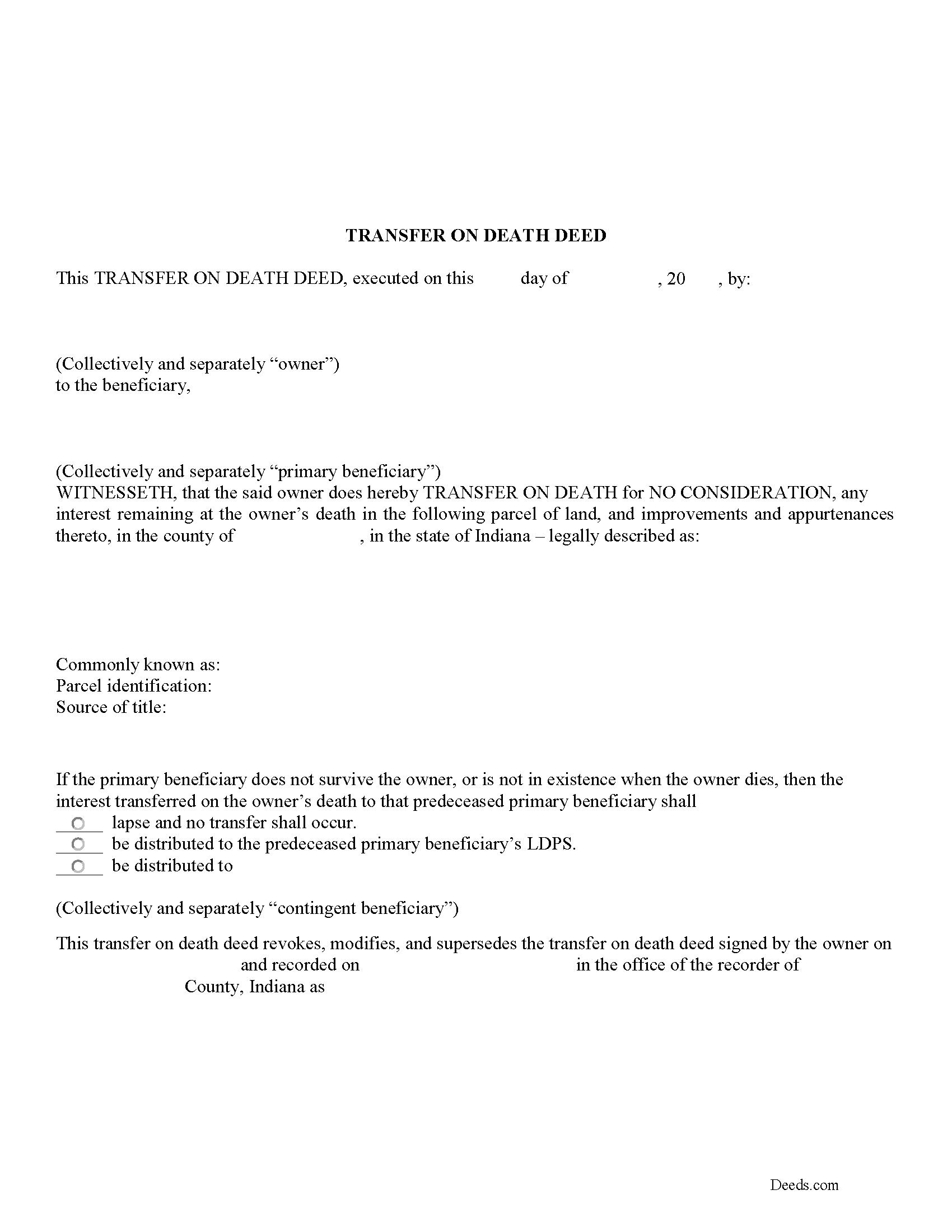Free Indiana Transfer On Death Deed PDF Word EForms