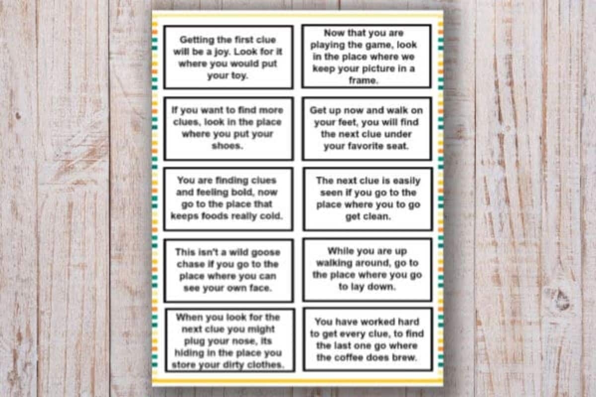 Free Printable Treasure Hunt Clues