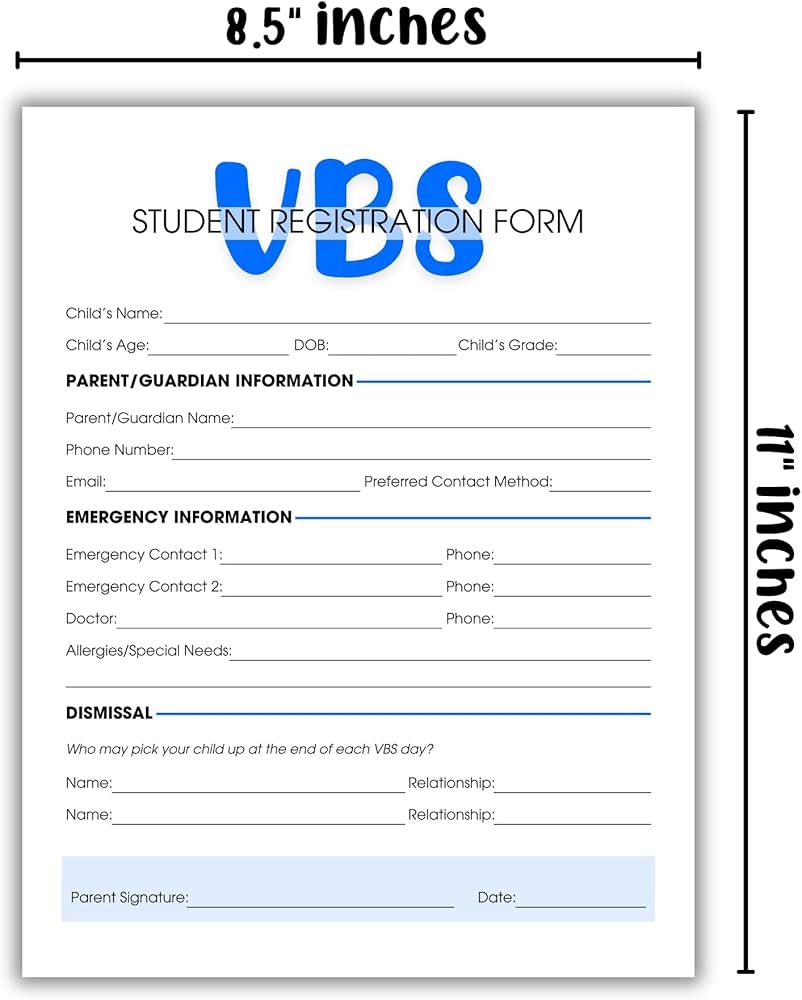 Amazon Vacation Bible School Registration Forms 50 Pk 8 5×11 Activities Certificate Themes Breaker Decorations Sign Up Sheets Adult Books