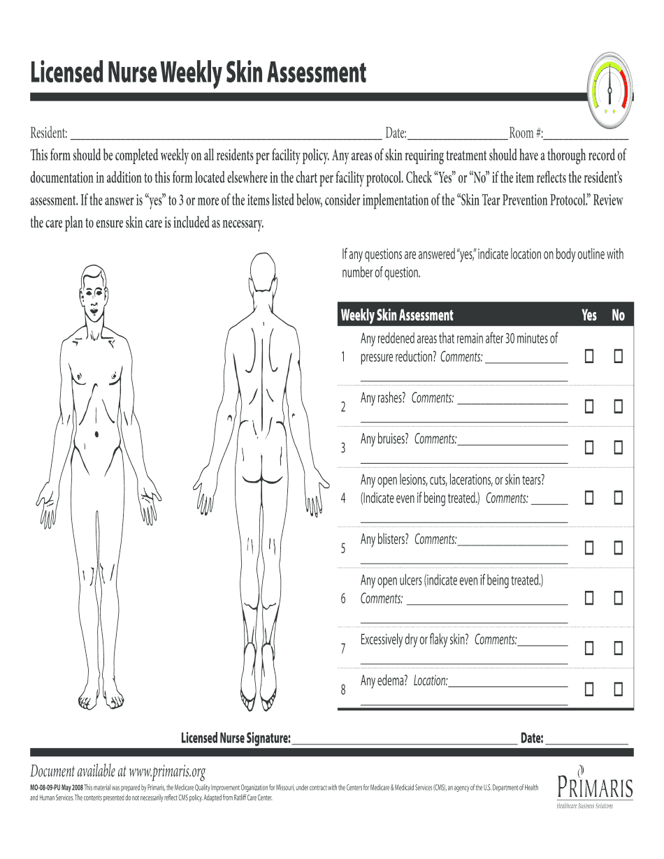 Skin Assessment Form Printable Blank PDF Online