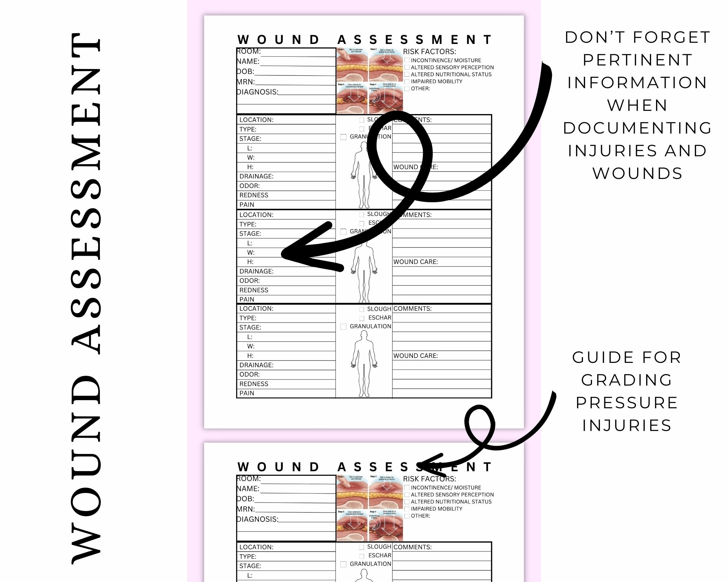 Wound Assessment Printable PDF Wound Care Documentation Wound Nurse Essentials Skin And Wound Management Pressure Ulcer Pressure Injury Etsy Australia