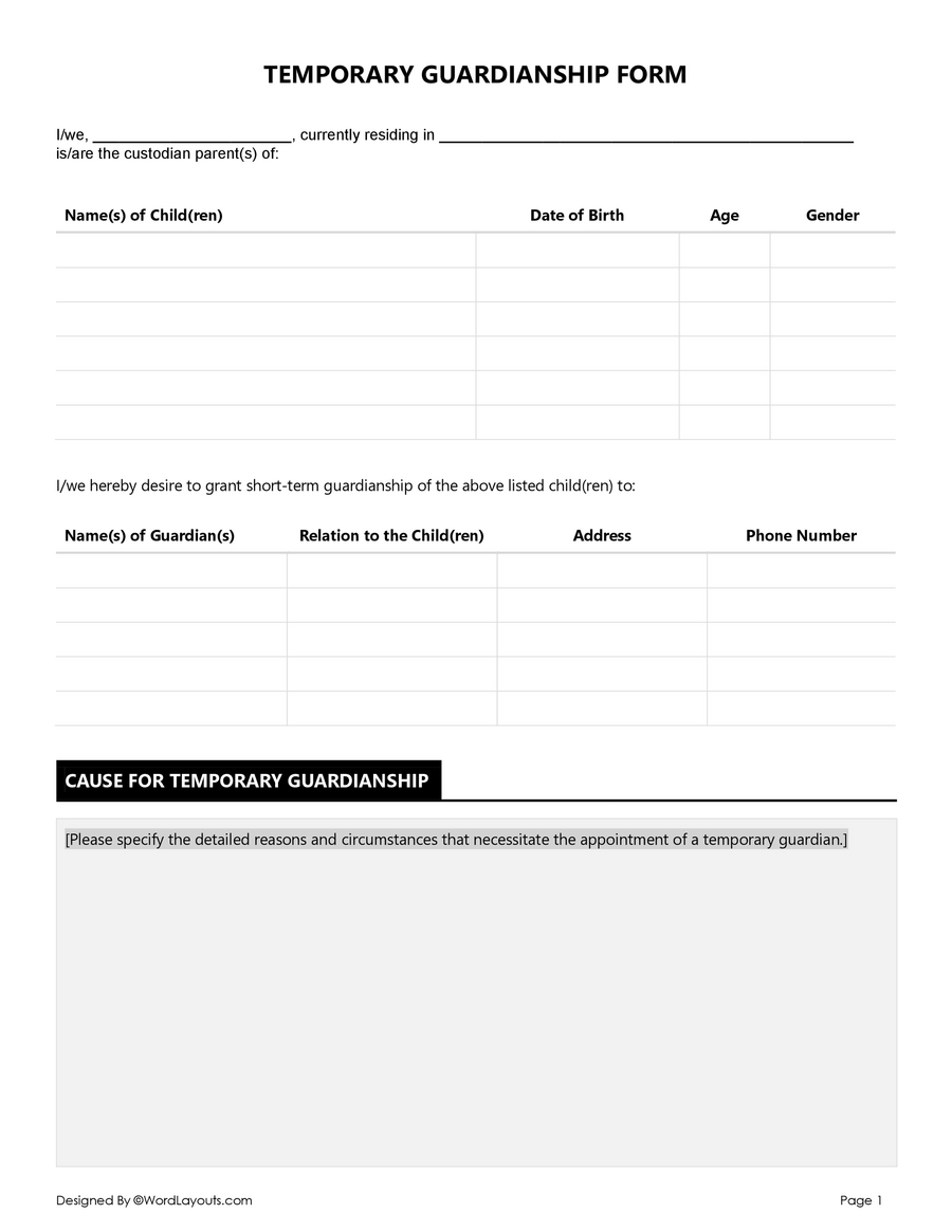 Printable Temporary Guardianship Form Free PDF U0026 Word LawDistrict