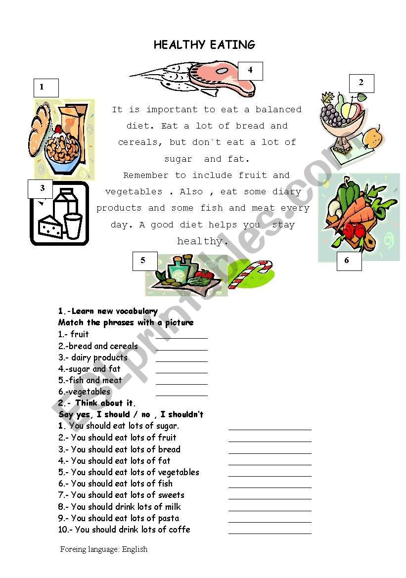 Reading Healthy Food ESL Worksheet By Carmenlady