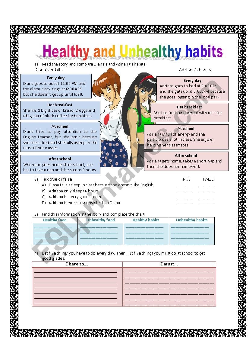 Healthy And Unhealthy Habits ESL Worksheet By Adalver