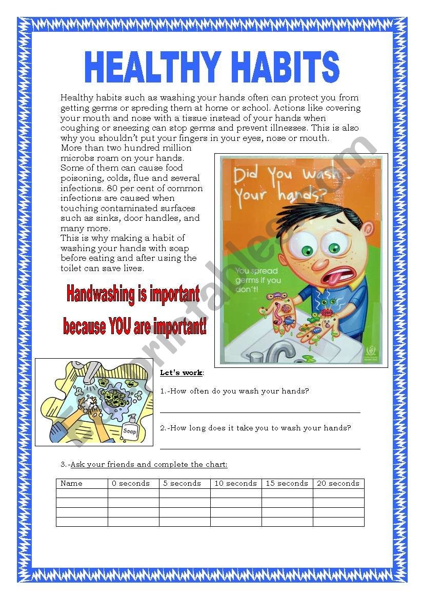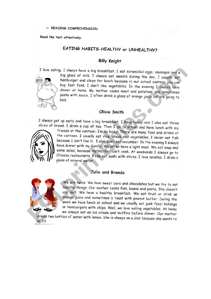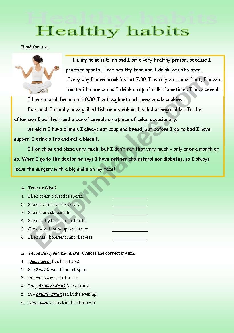 READING COMPREHENSION HEALTHY HABITS 3PAGES ESL Worksheet By Selali