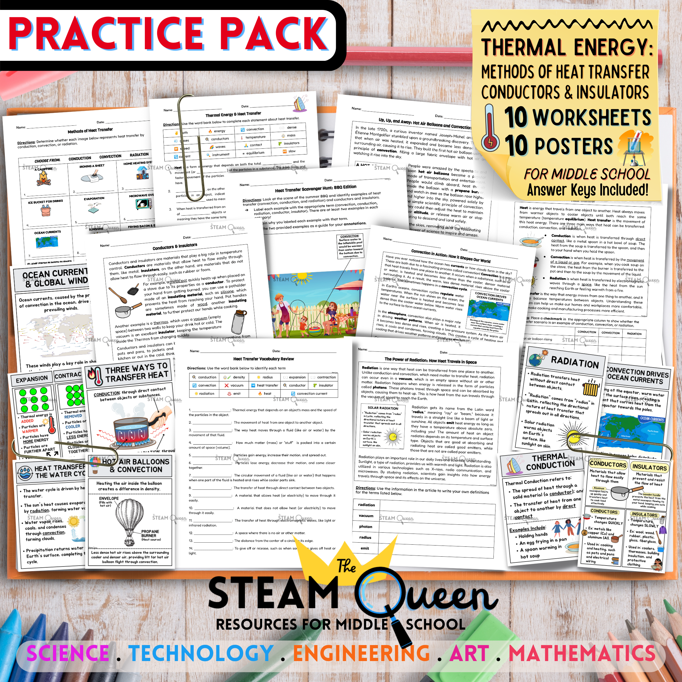 Heat Transfer 10 Worksheets And 10 Visual Notes Poster Set Conduction Convection Radiation Middle School Classful