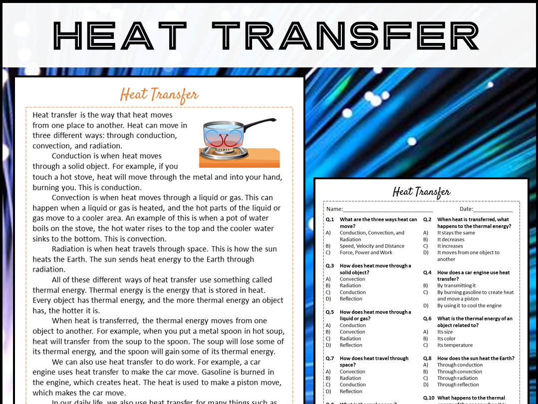 Are you looking for a fun and educational activity to help your students improve their understanding of heat transfer? Look no further! This Heat Transfer Reading Comprehension Worksheet is the perfect resource to engage your students while reinforcing key concepts.