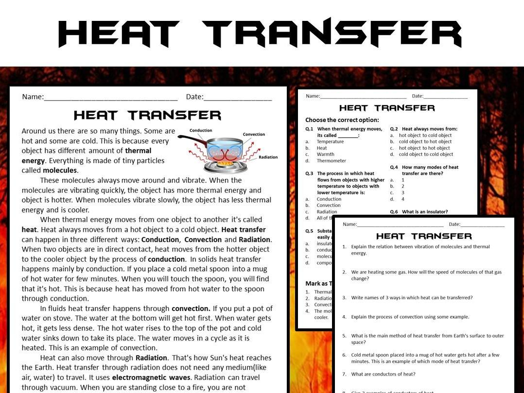 Heat Transfer Reading Comprehension Passage And Questions PDF Teaching Resources